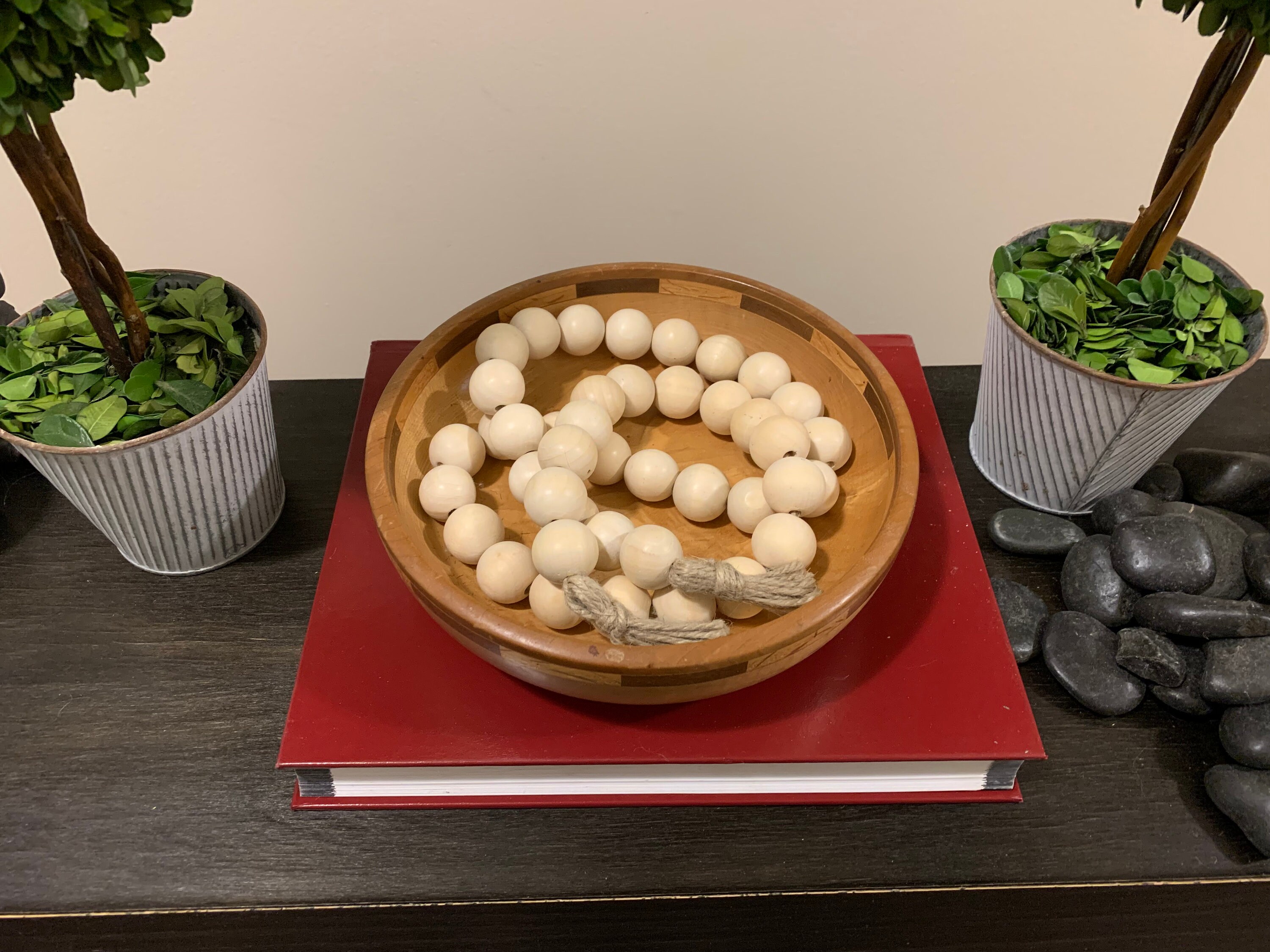 Spruce up and give life to any room with this White Pine Wood Bead Garland. The garland is large, chunky and lengthy in size. The garland is a great addition to any table, fireplace, shelf or tray. The best part of this gem is however you decide to style this garland will be lovely!
