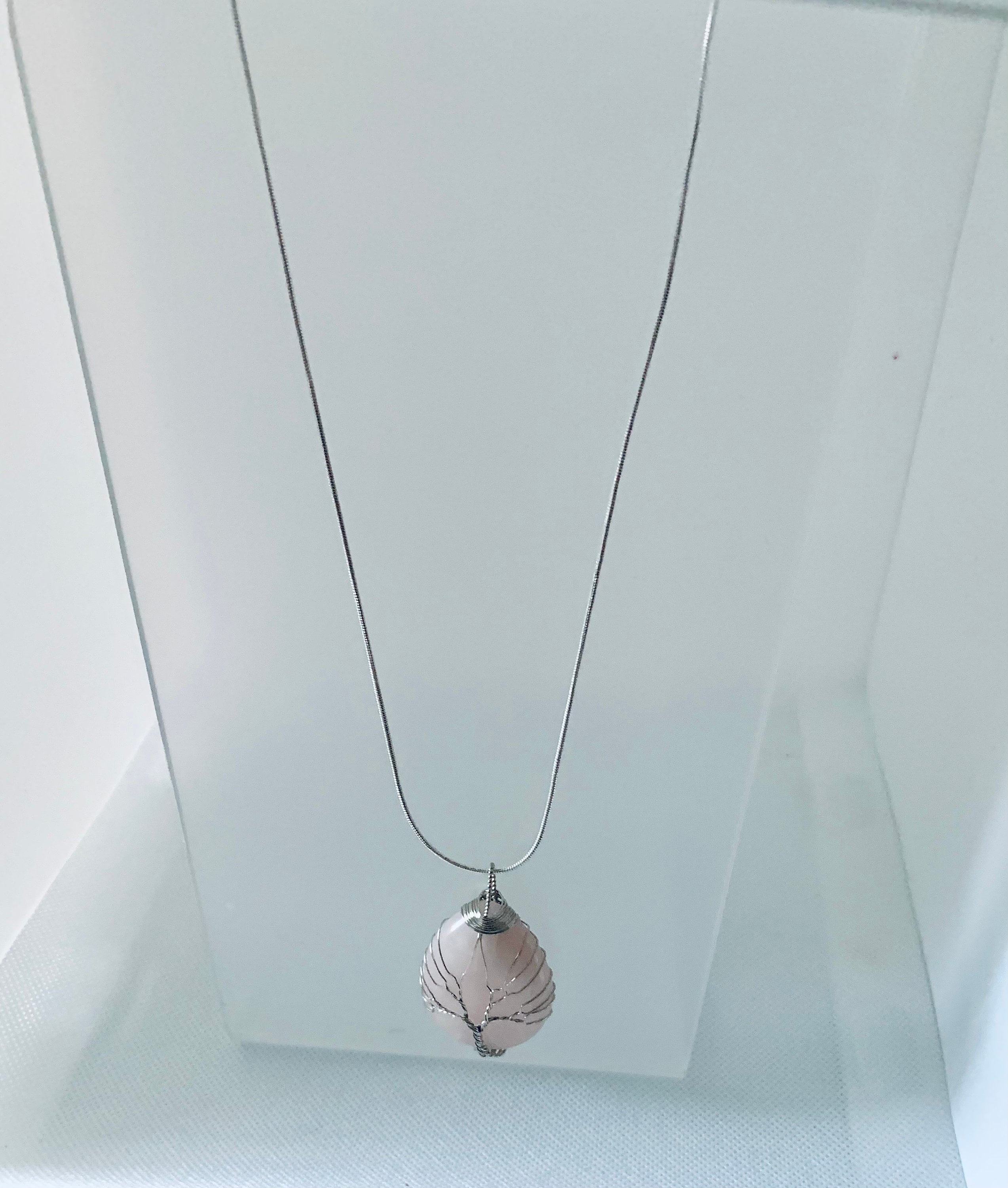 Rose Quartz Wire Wrapped Necklace - Unleash the enchanting allure of this beautiful necklace featuring a captivating rose quartz gemstone intricately encased in wire wrapping. The gentle pink hues of the rose quartz symbolize love, compassion, and inner peace, creating a mesmerizing piece of jewelry that resonates with positive energy. Embrace the healing properties of the rose quartz, promoting emotional healing, self-love, and harmony in your life. The versatile necklace easily transitions from day to night, adding a touch of elegance and spirituality to any ensemble. Indulge in the beauty and serenity of the rose quartz with this exquisite necklace that embodies grace and empowerment.