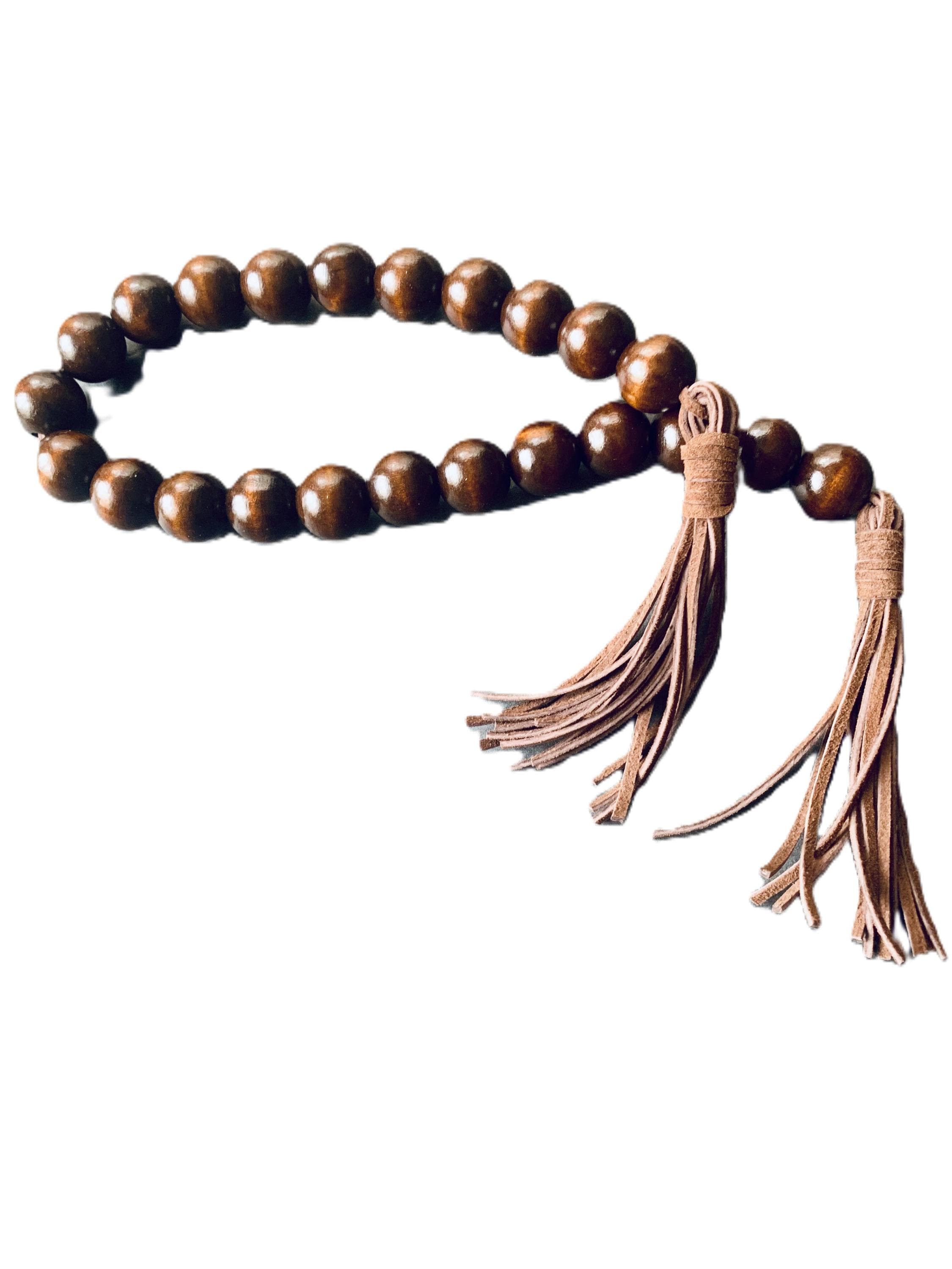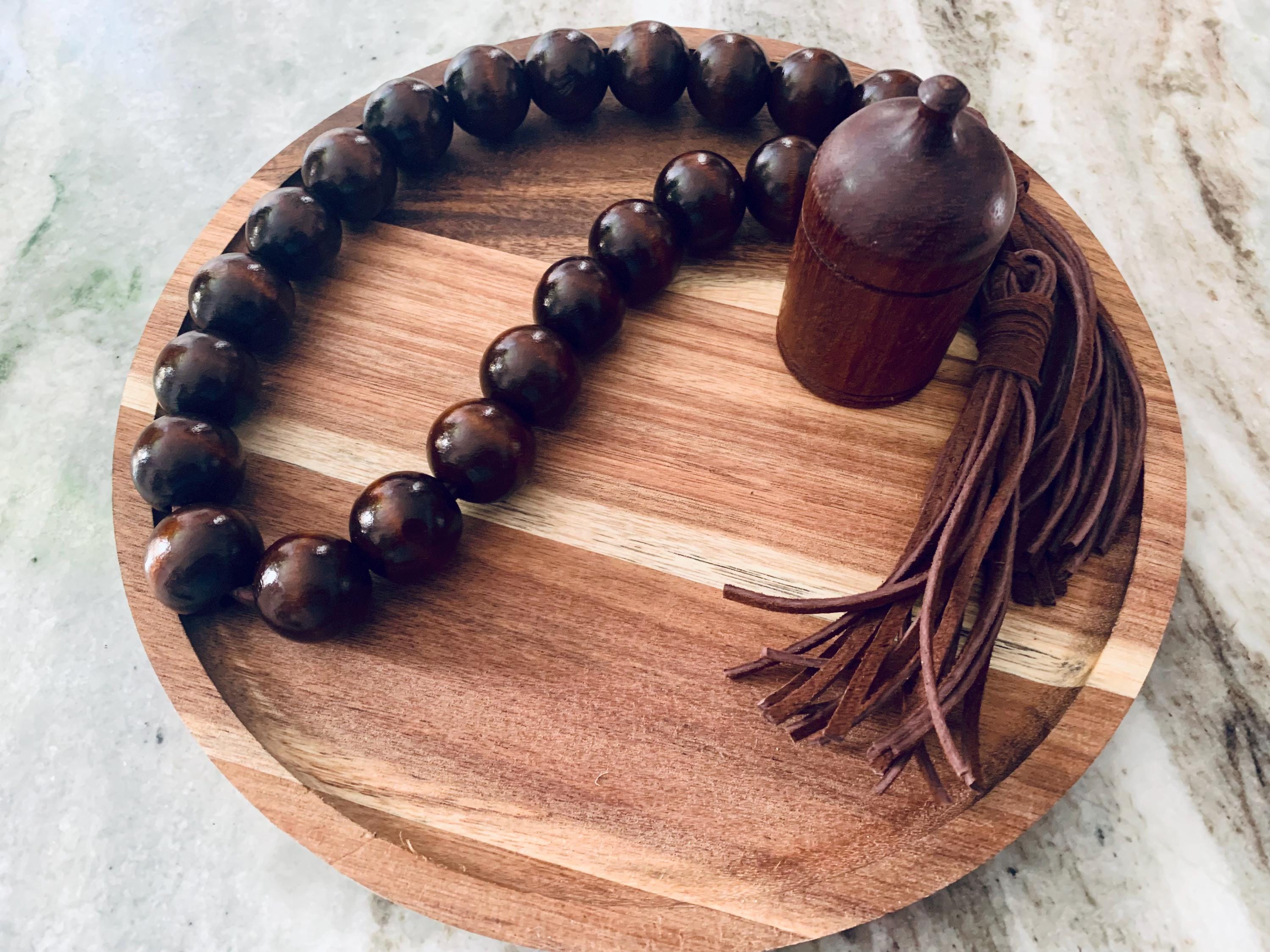 Spruce up any room with the Mahogany Wood Beaded Garland with Chocolate Leather Tassels. The garland is a great addition to any table, fireplace, shelf or tray. The best part of this gem is however you decide to style this garland will be lovely!