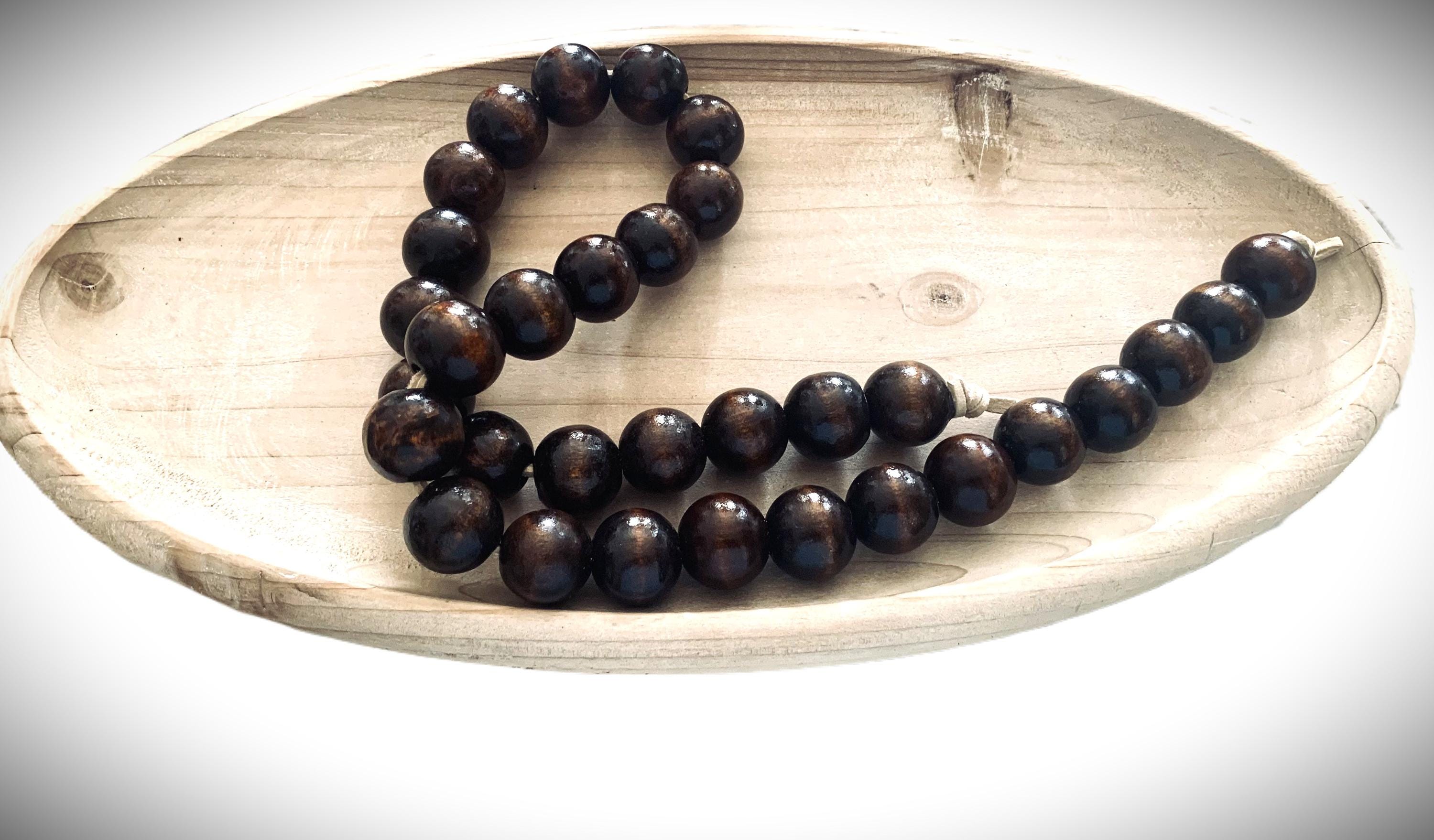 Enhance your decor with our exquisite Mahogany Wood Beaded Garland. Handcrafted with small ivory leather loops, this versatile piece adds a touch of elegance to any space. Perfect for mantels, shelves, or as a stylish wall accent. Elevate your home with this unique and charming accessory today!