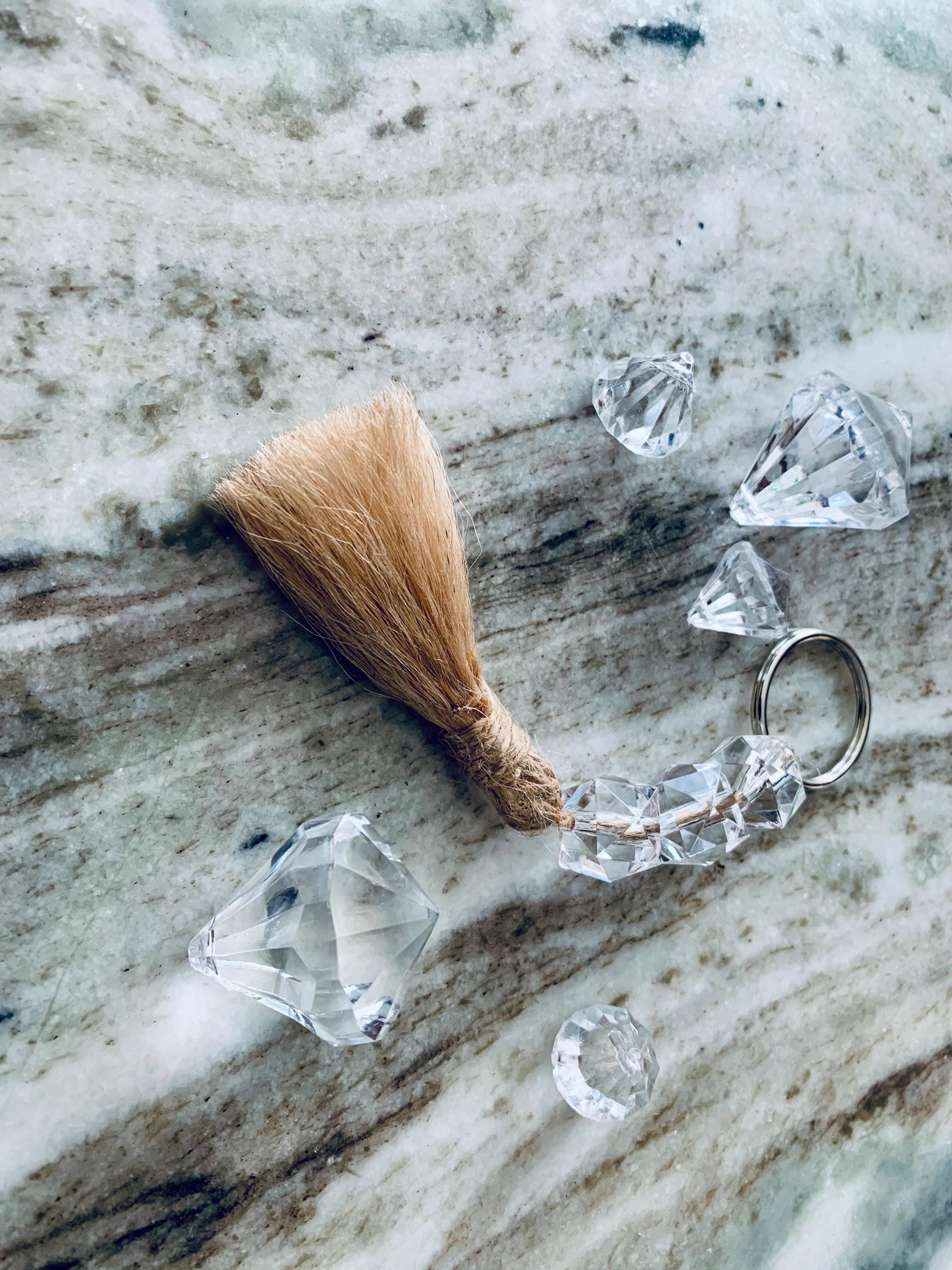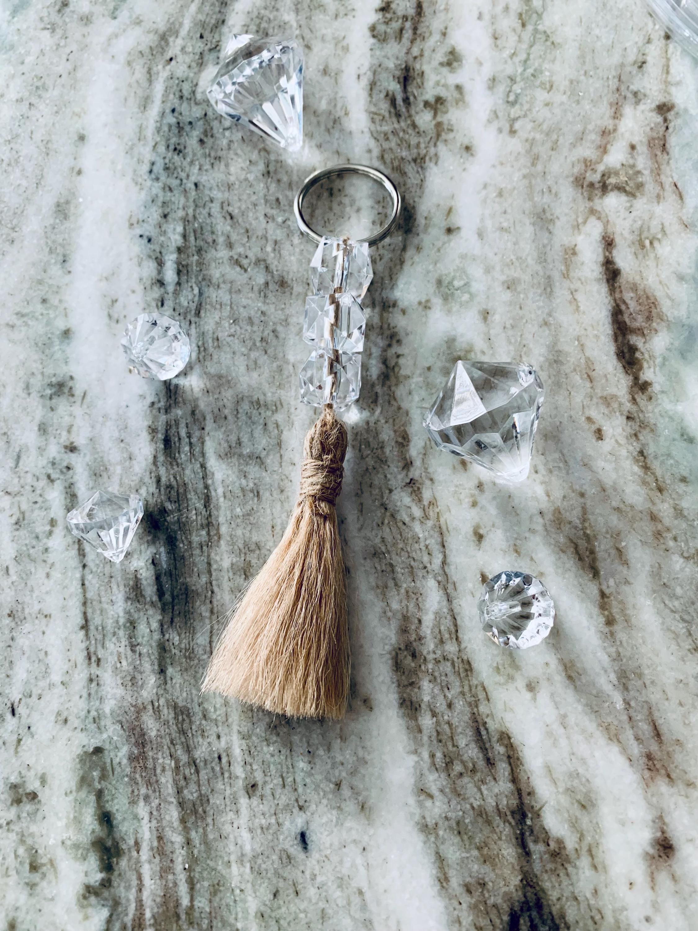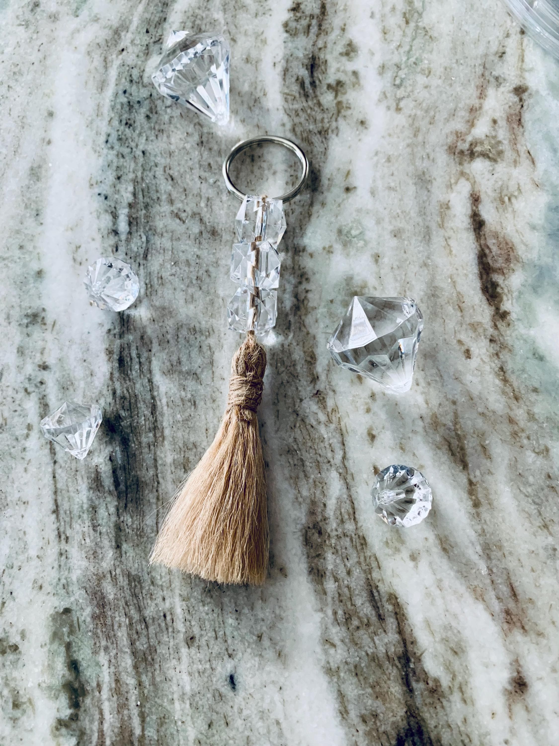Introducing the Natural Acrylic Clear Quartz Cube Keychain with Tassel! This stunning keychain features 3 beautiful, clear quartz cubes paired with a chic tassel, making it a perfect blend of style and nature. Perfect for adding charm to your keys, bags, or as a thoughtful gift. Embrace the crystal energy and elevate your everyday carry with this unique keychain! Order yours today and shine with every adventure!