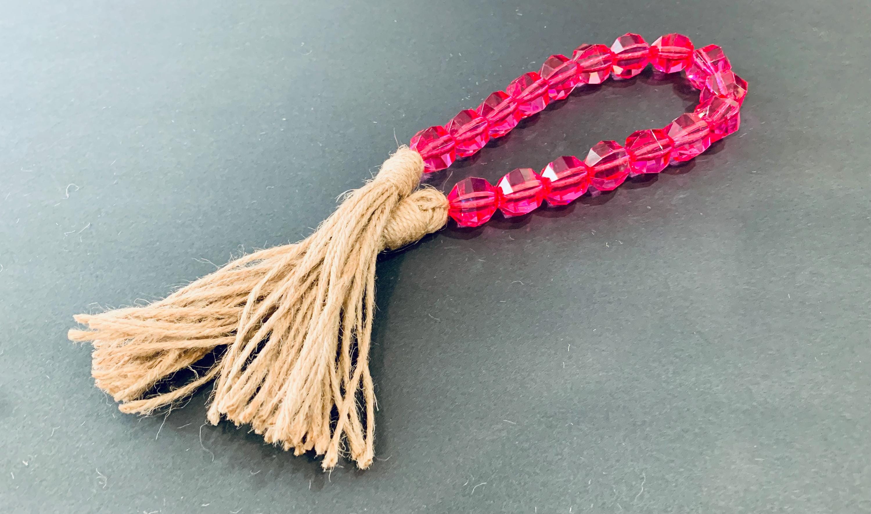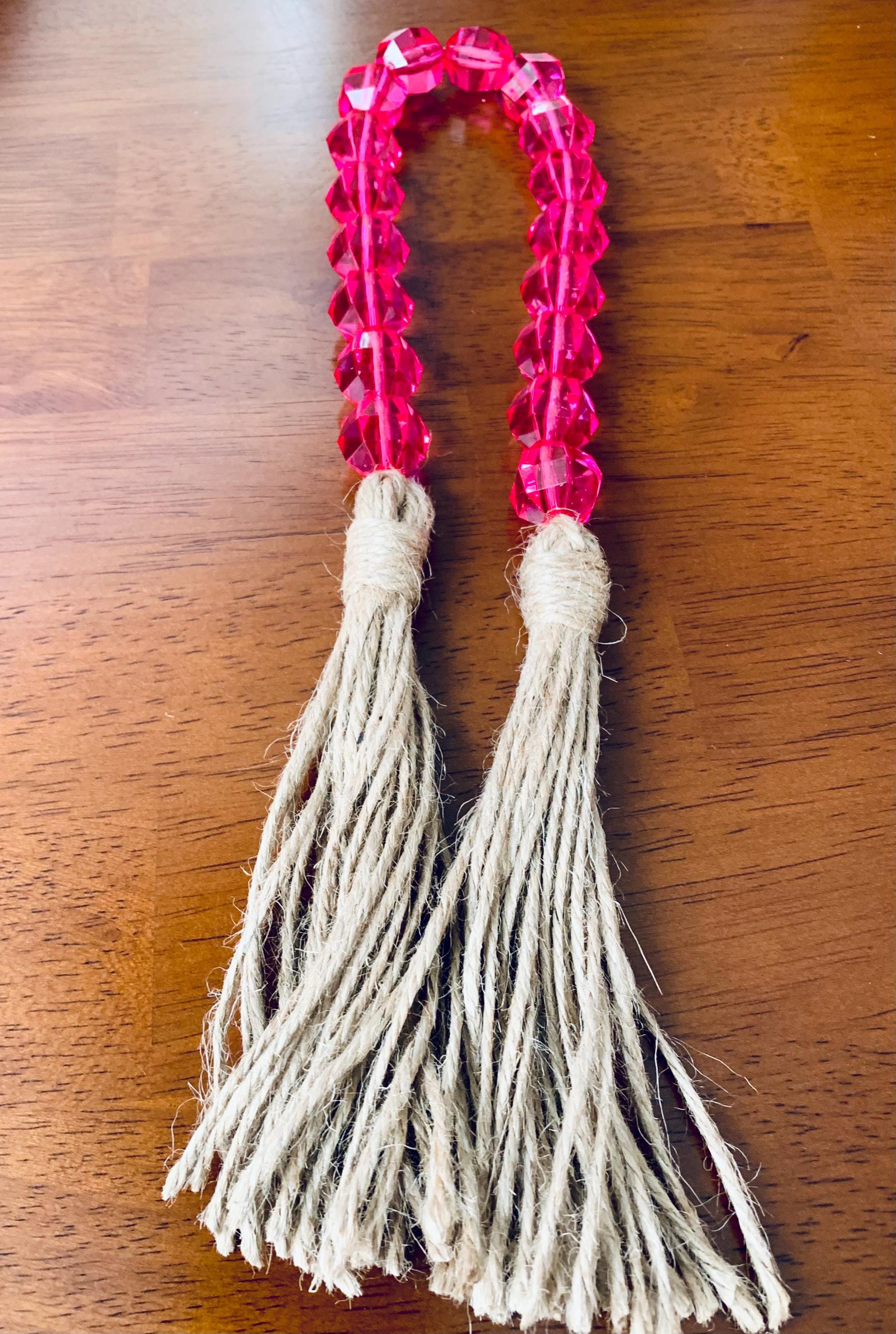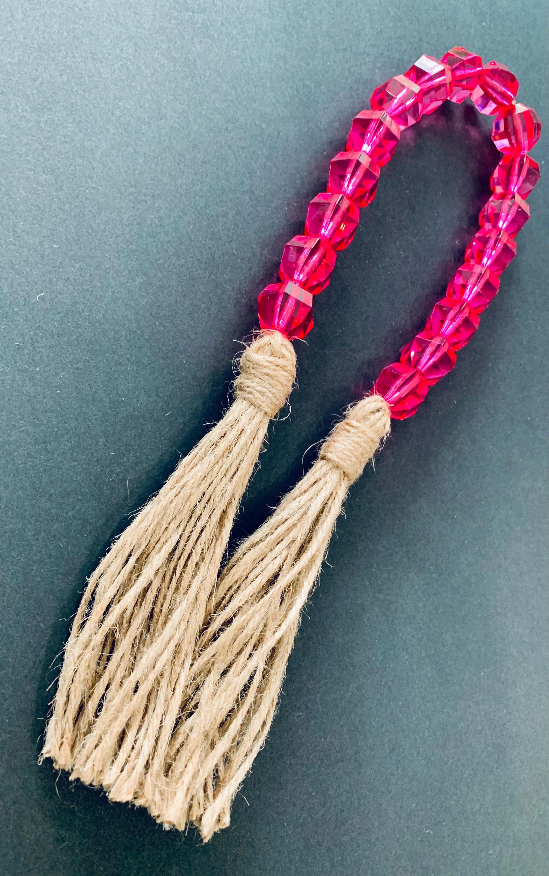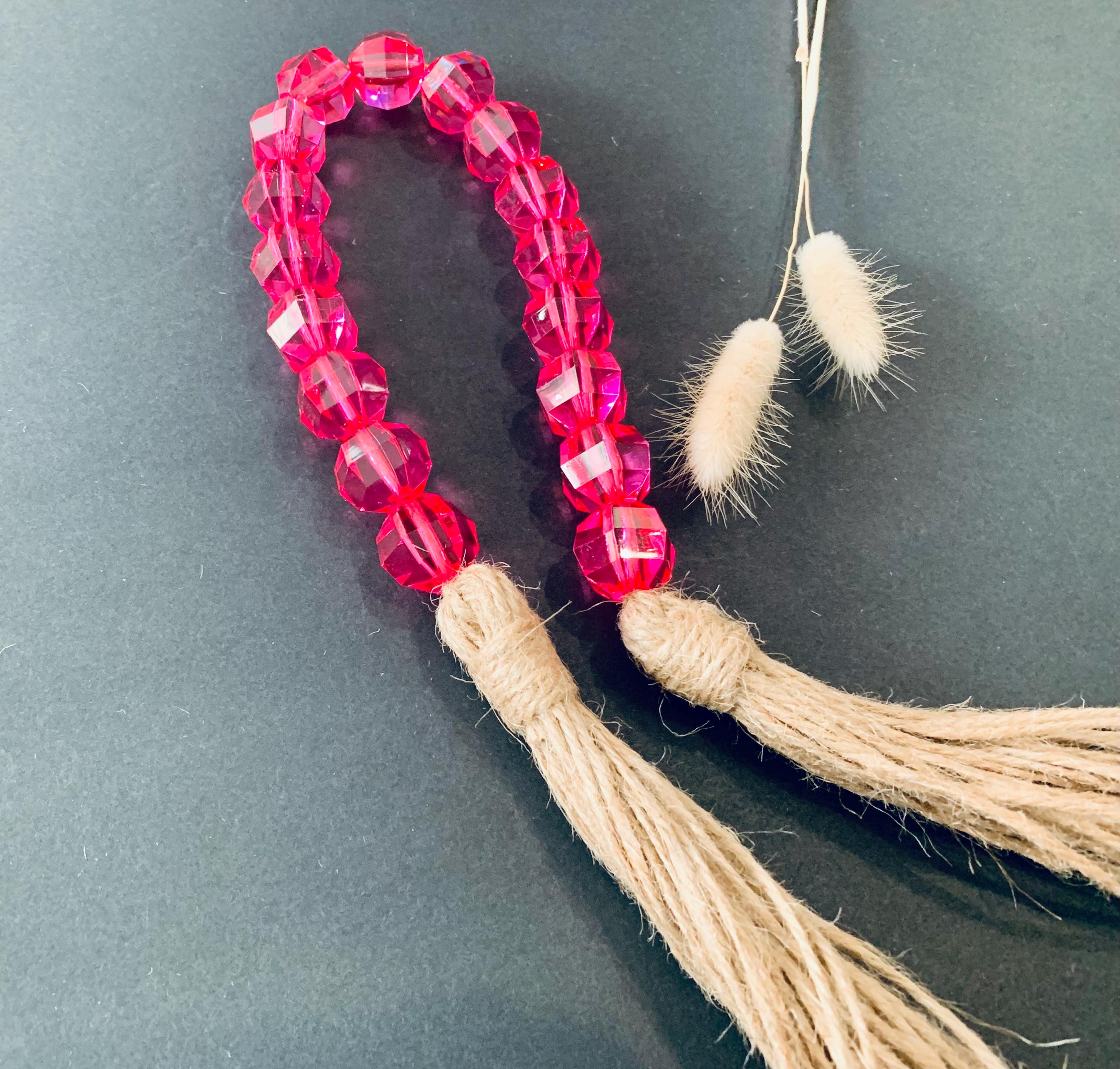 - The beads are pink in color with jute tassels