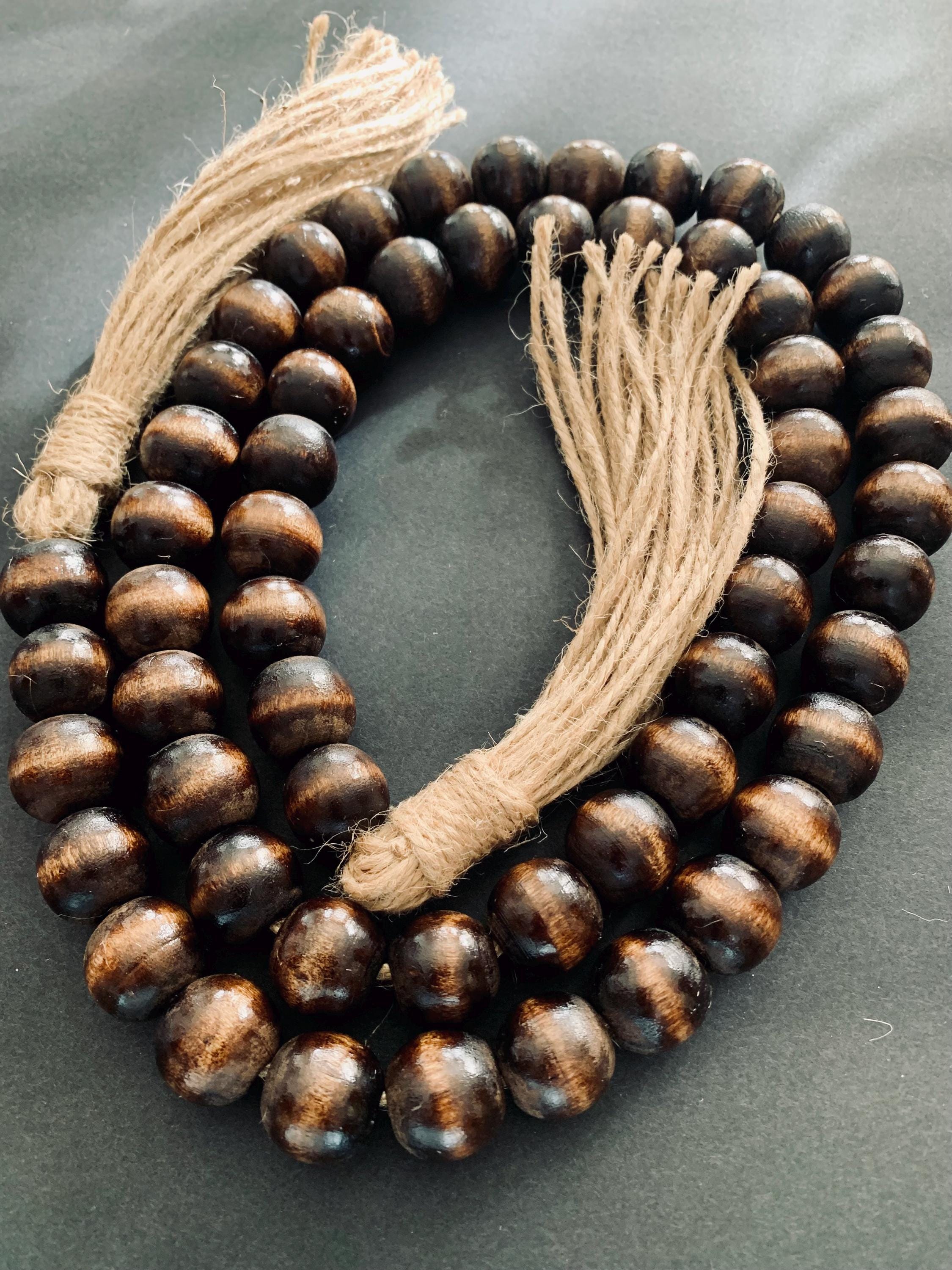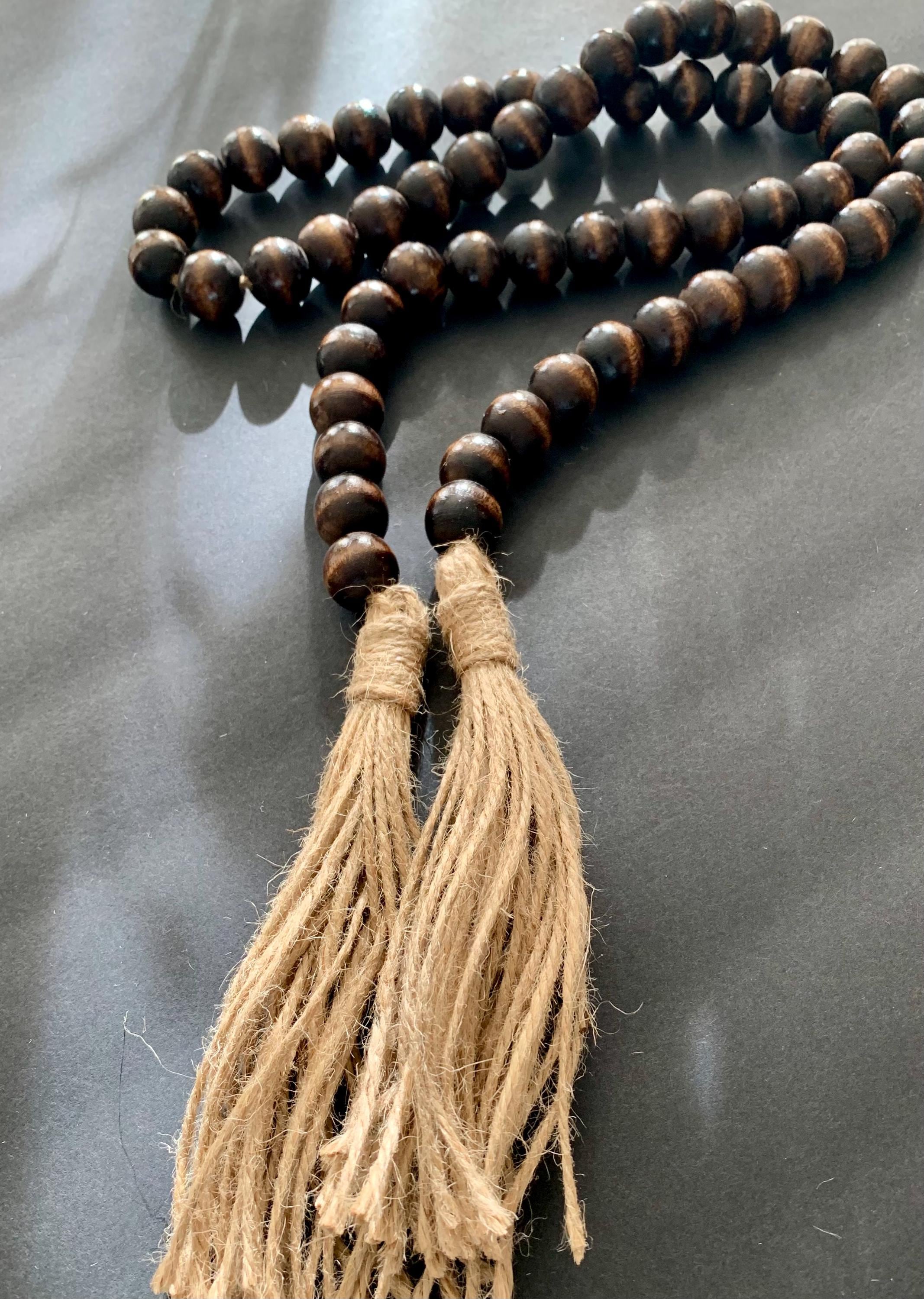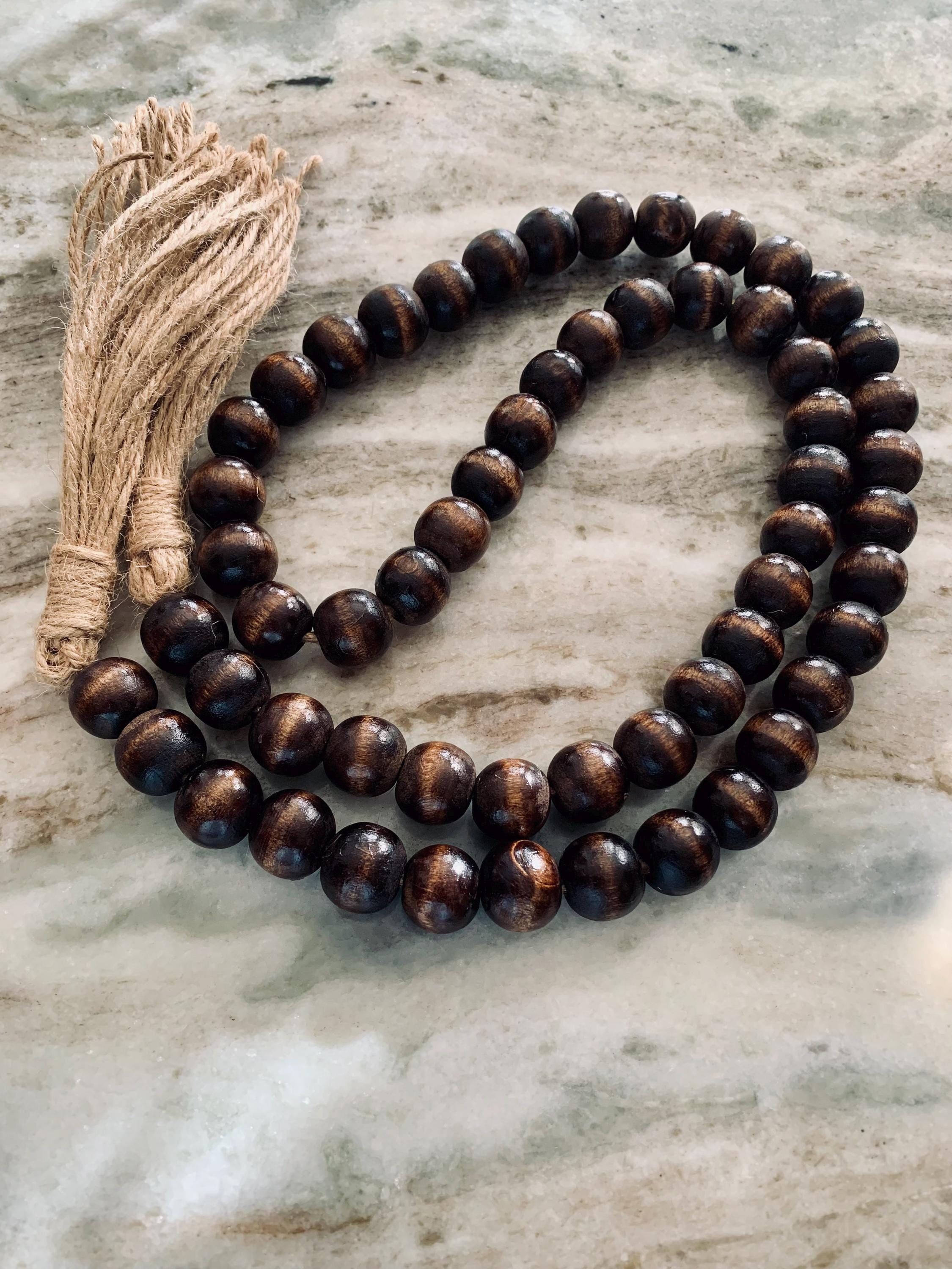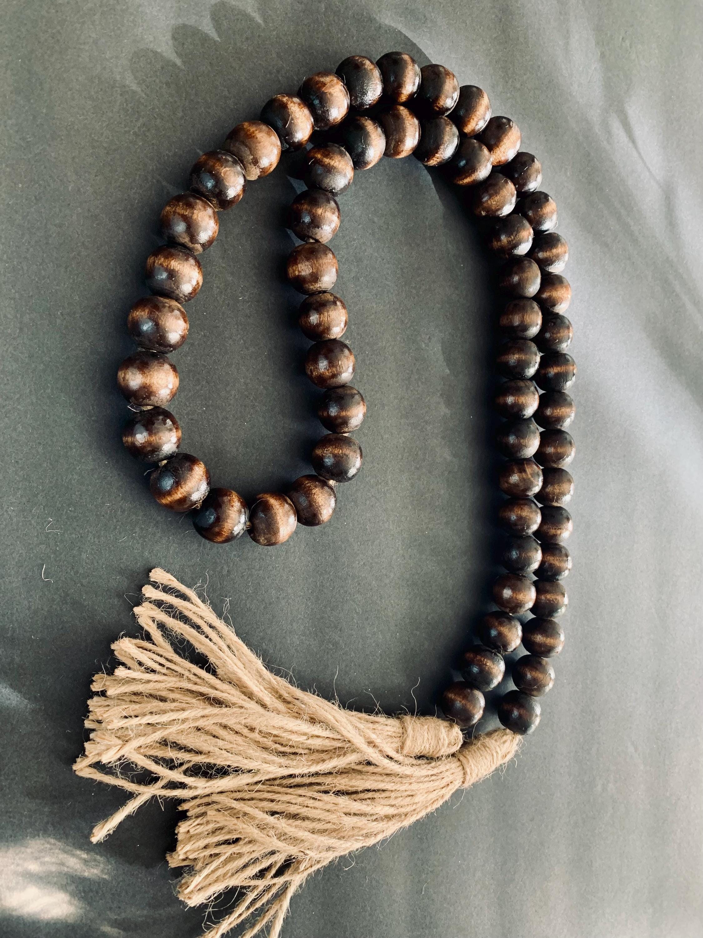 Enhance your home decor with our stunning Mahogany Wood Beaded Garland adorned with charming jute tassels. This beautifully crafted garland adds a touch of rustic elegance to any space, perfect for draping on mantels, shelves, or as a unique wall hanging. Each bead showcases the rich color and natural grain of mahogany, making it a standout piece. Ideal for cozy living rooms, bohemian nurseries, or minimalist settings. Elevate your decor with this versatile, handcrafted accent today!