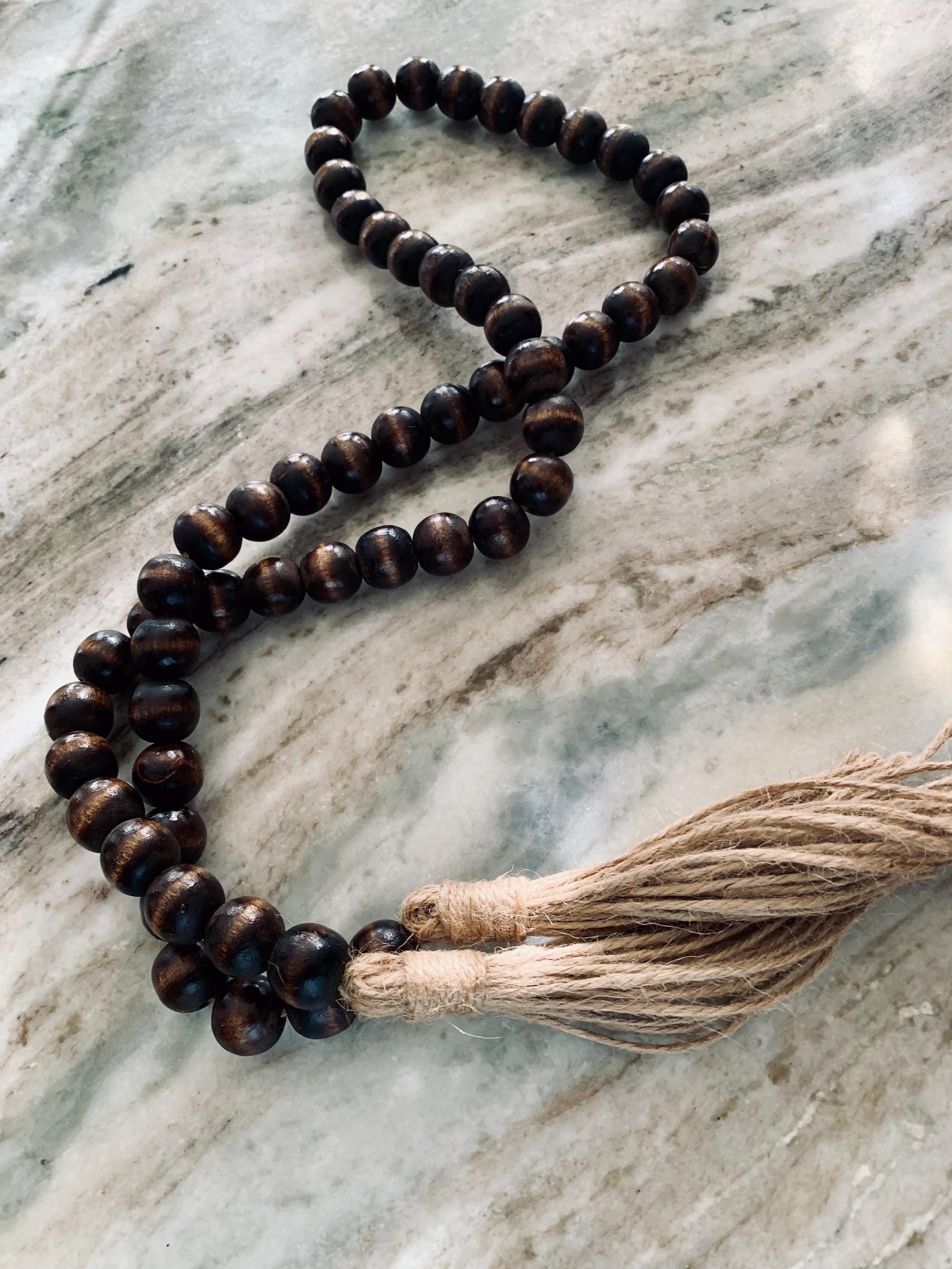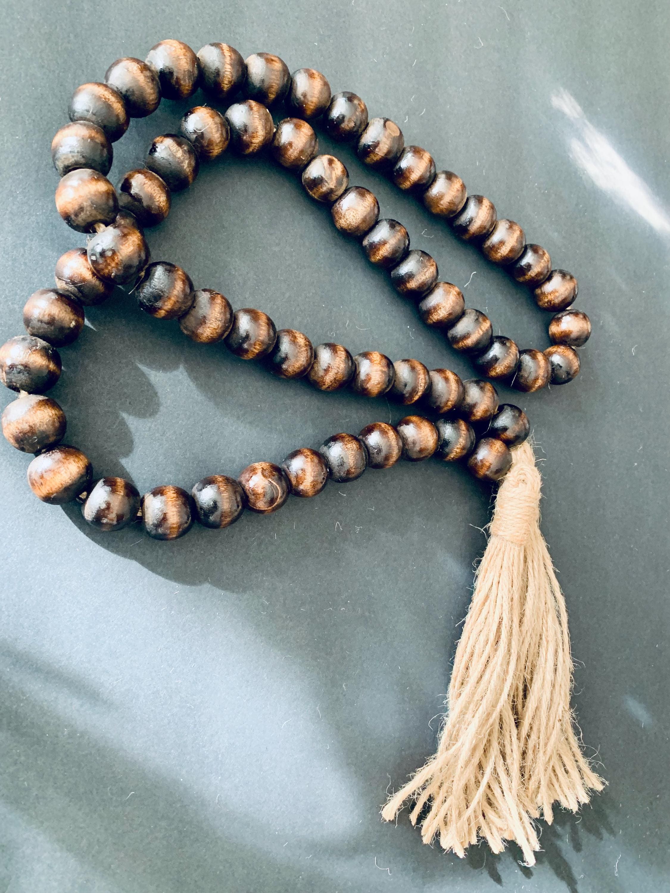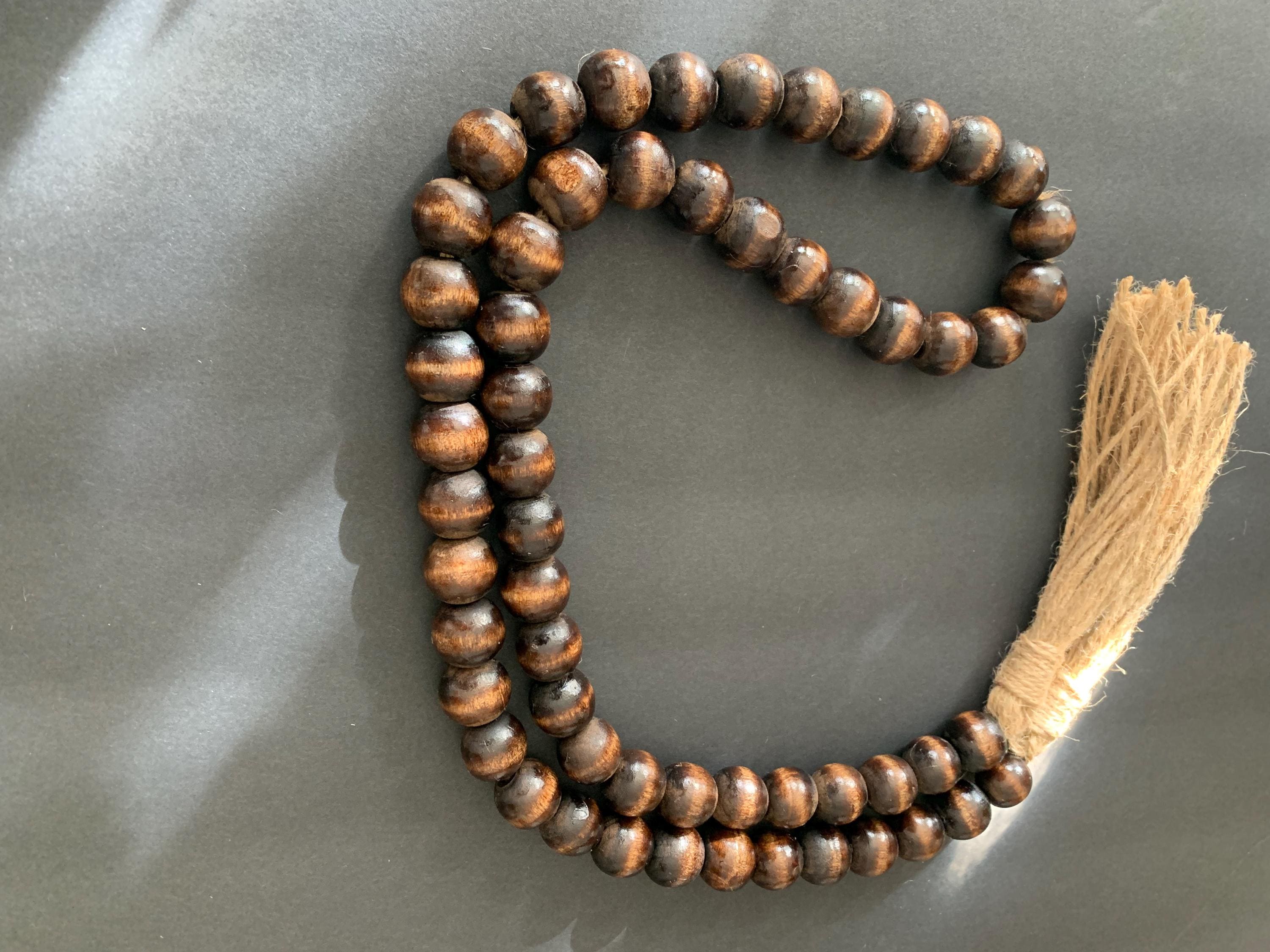 Enhance your home decor with our stunning Mahogany Wood Beaded Garland adorned with charming jute tassels. This beautifully crafted garland adds a touch of rustic elegance to any space, perfect for draping on mantels, shelves, or as a unique wall hanging. Each bead showcases the rich color and natural grain of mahogany, making it a standout piece. Ideal for cozy living rooms, bohemian nurseries, or minimalist settings. Elevate your decor with this versatile, handcrafted accent today!