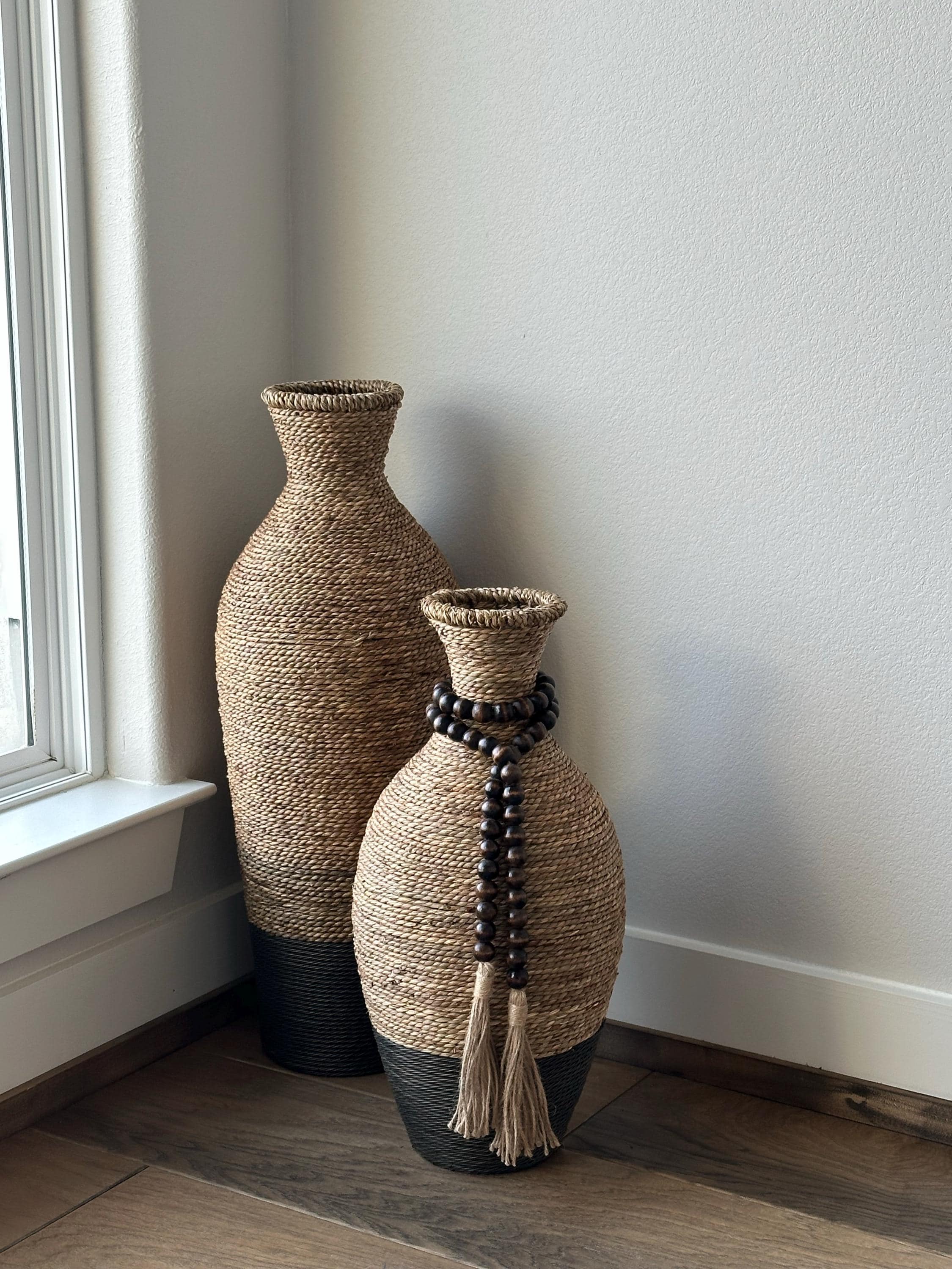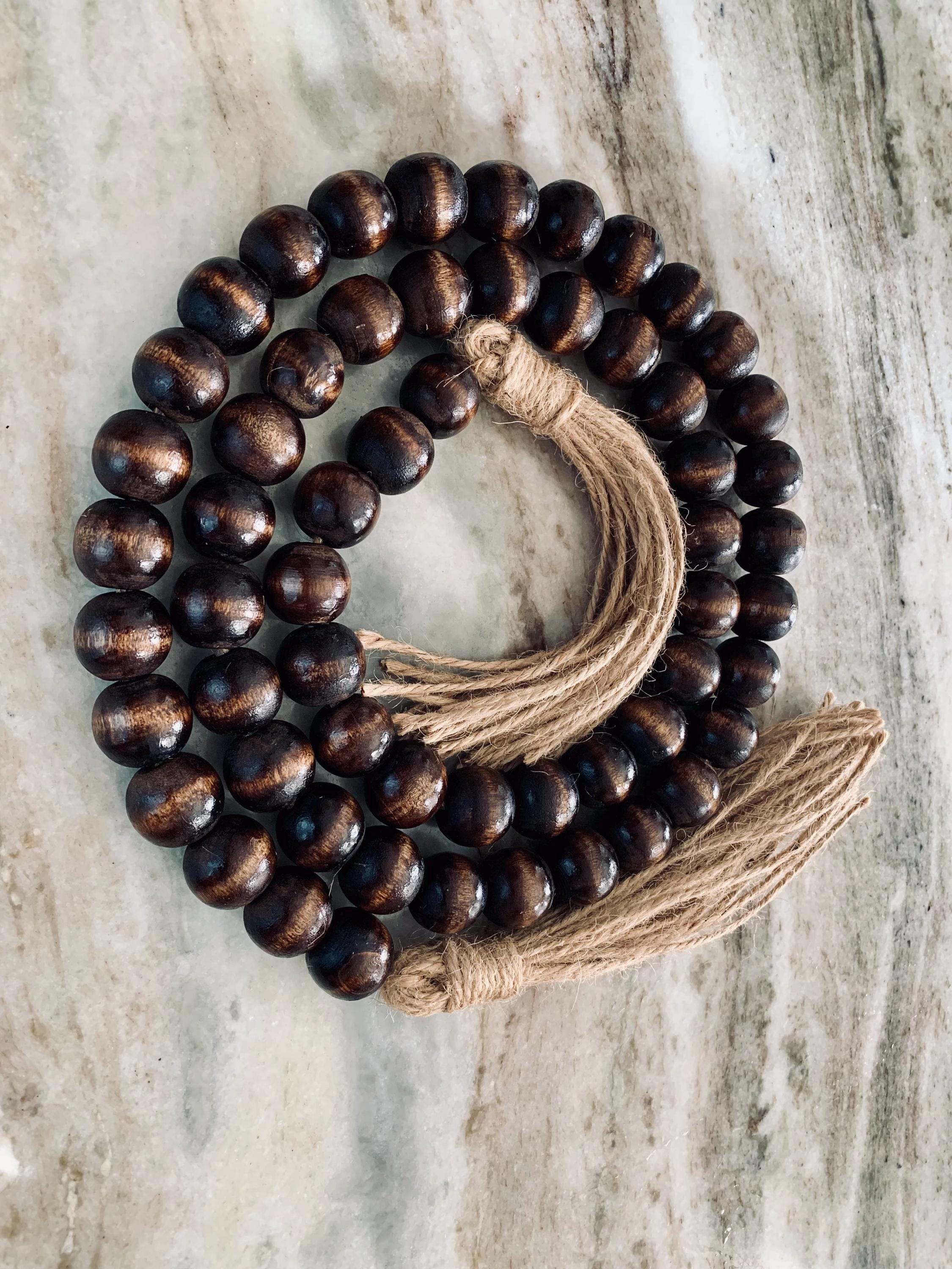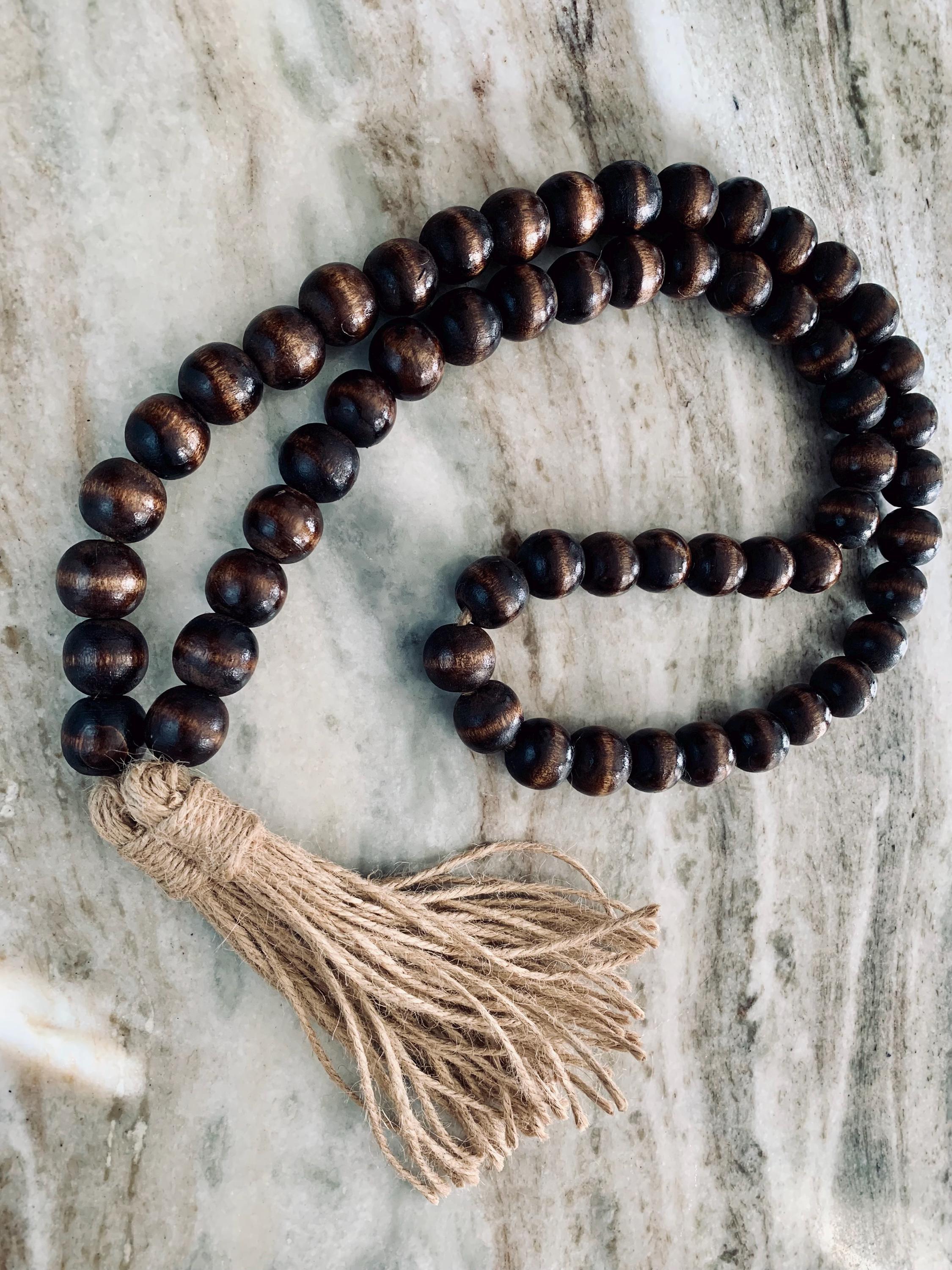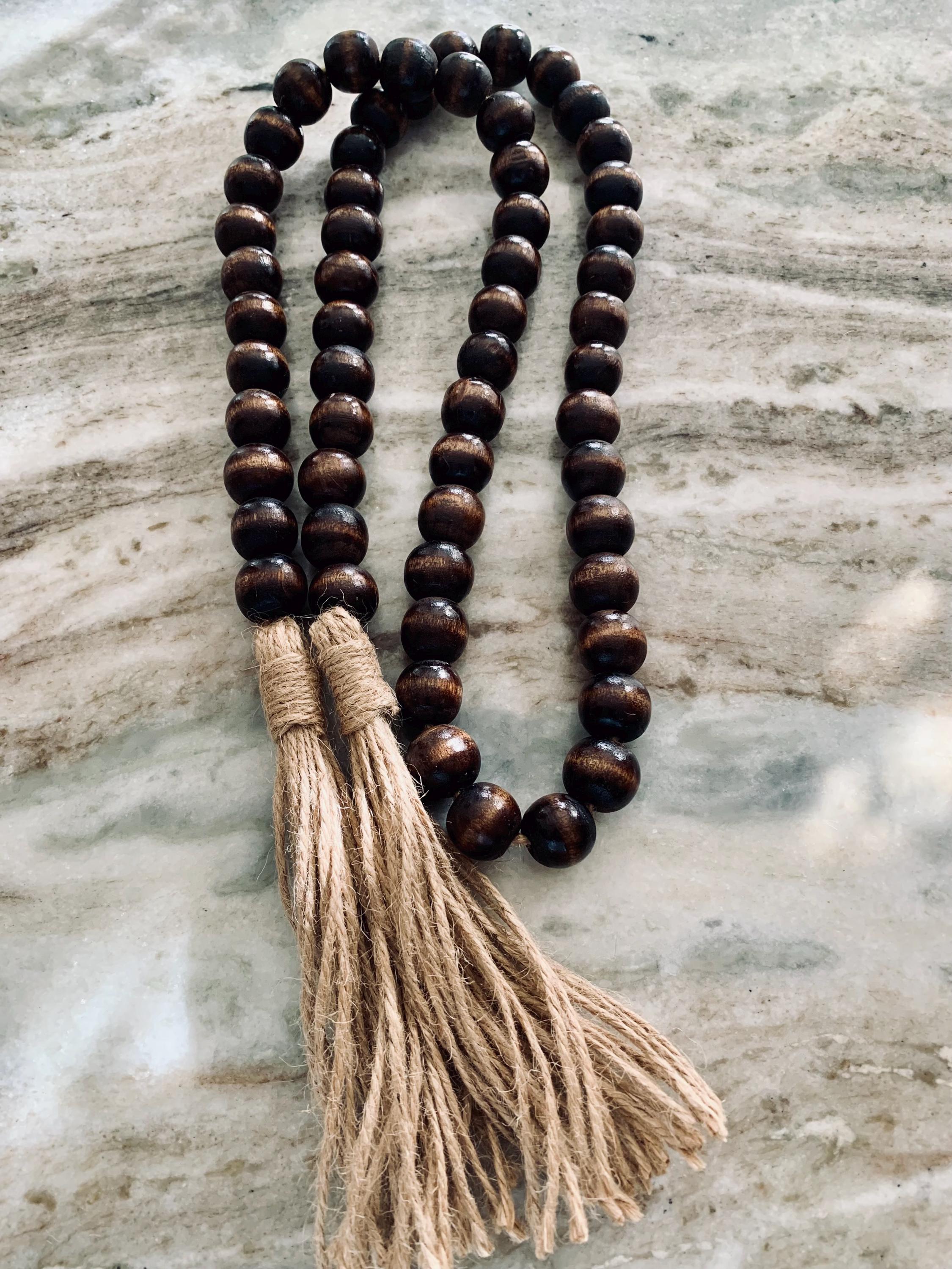 Enhance your home decor with our stunning Mahogany Wood Beaded Garland adorned with charming jute tassels. This beautifully crafted garland adds a touch of rustic elegance to any space, perfect for draping on mantels, shelves, or as a unique wall hanging. Each bead showcases the rich color and natural grain of mahogany, making it a standout piece. Ideal for cozy living rooms, bohemian nurseries, or minimalist settings. Elevate your decor with this versatile, handcrafted accent today!