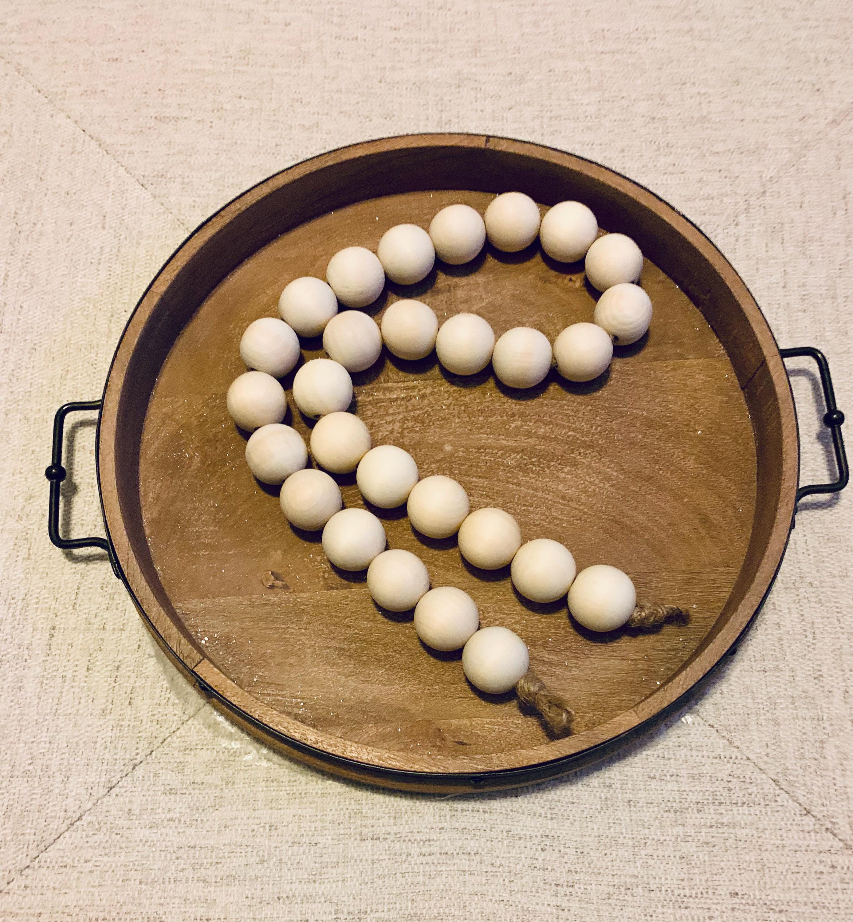 Add a touch of rustic charm to your home decor with the Wood Beaded Garland featuring Jute Rope Loops at each end. Each large bead brings a bold presence, making this garland a perfect accent piece for your mantle, entryway, or bookshelf. Ideal for layering or draping, it effortlessly complements any style—from farmhouse to boho. Elevate your space and create a cozy atmosphere with this beautiful, versatile garland. Perfect for both everyday use and special occasions!
