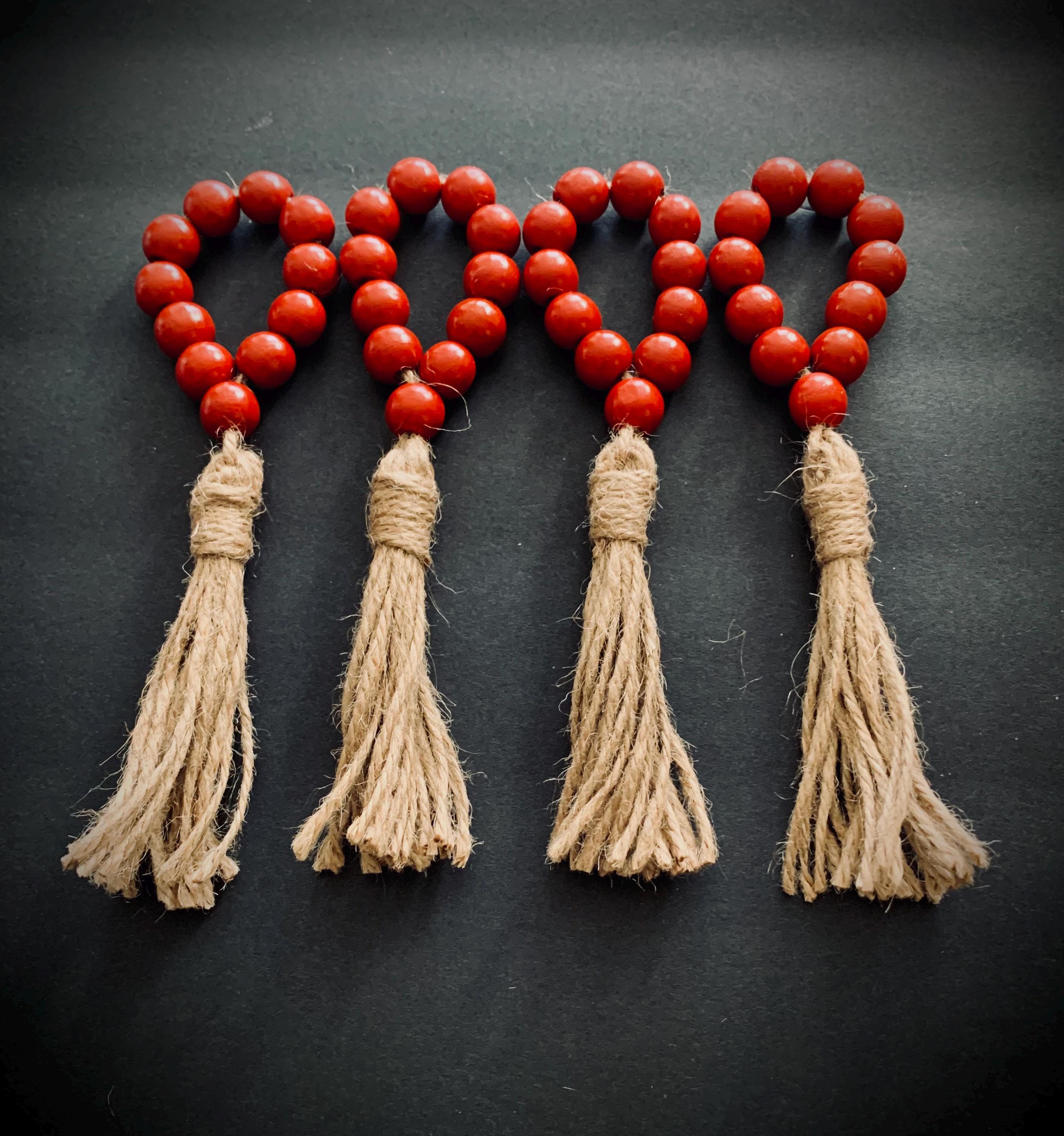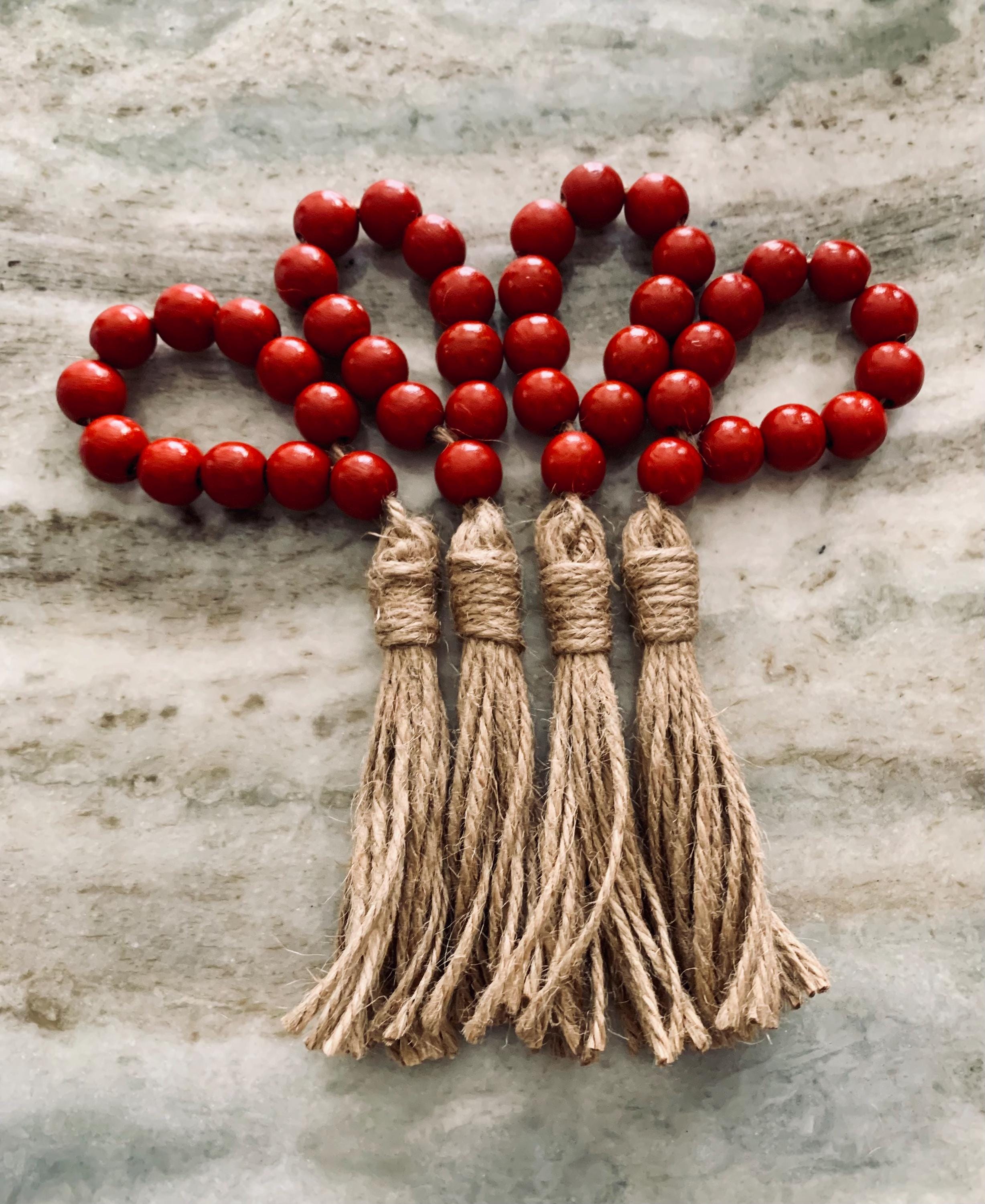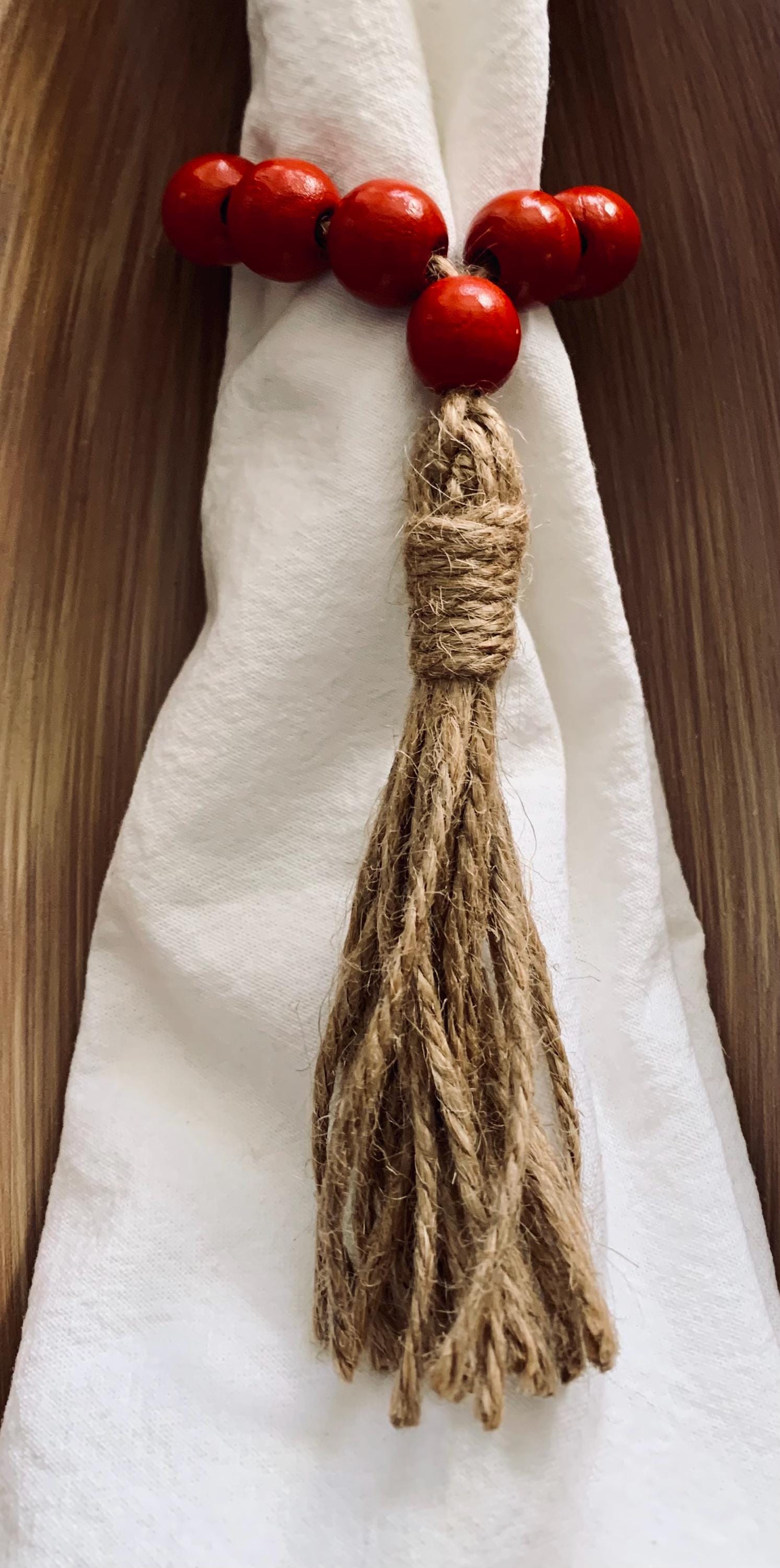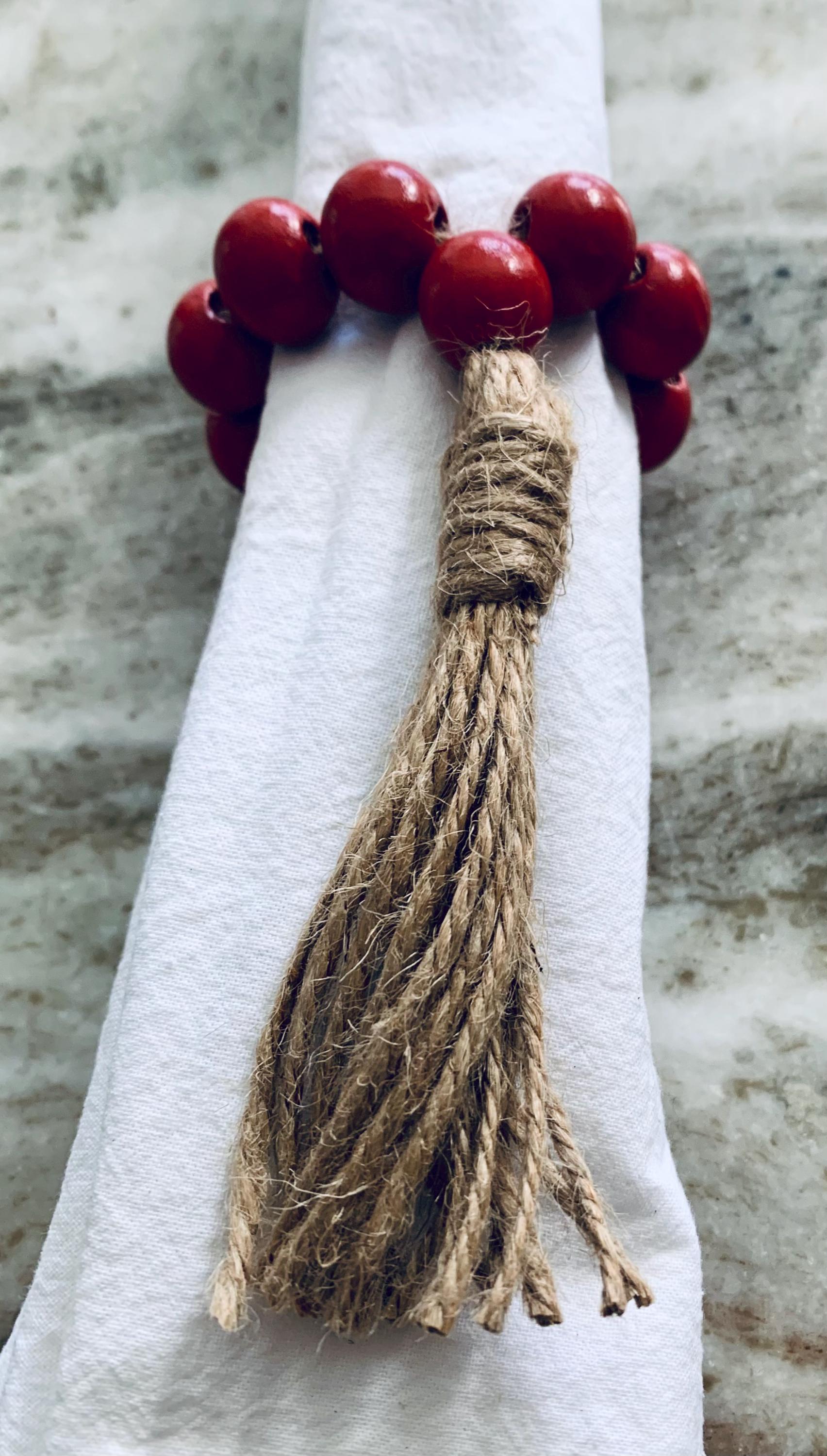 Add a touch of elegance to your dining table with our Set of 4 Red Beaded Napkin Rings with Jute Tassels. Crafted from vibrant red beads, these delightful napkin rings are perfect for both everyday meals and special occasions. The rustic jute tassels provide a charming contrast, enhancing your table decor. Ideal for holiday gatherings, family dinners, or festive celebrations, they make a thoughtful gift for loved ones. Elevate your table setting effortlessly with this stunning set!