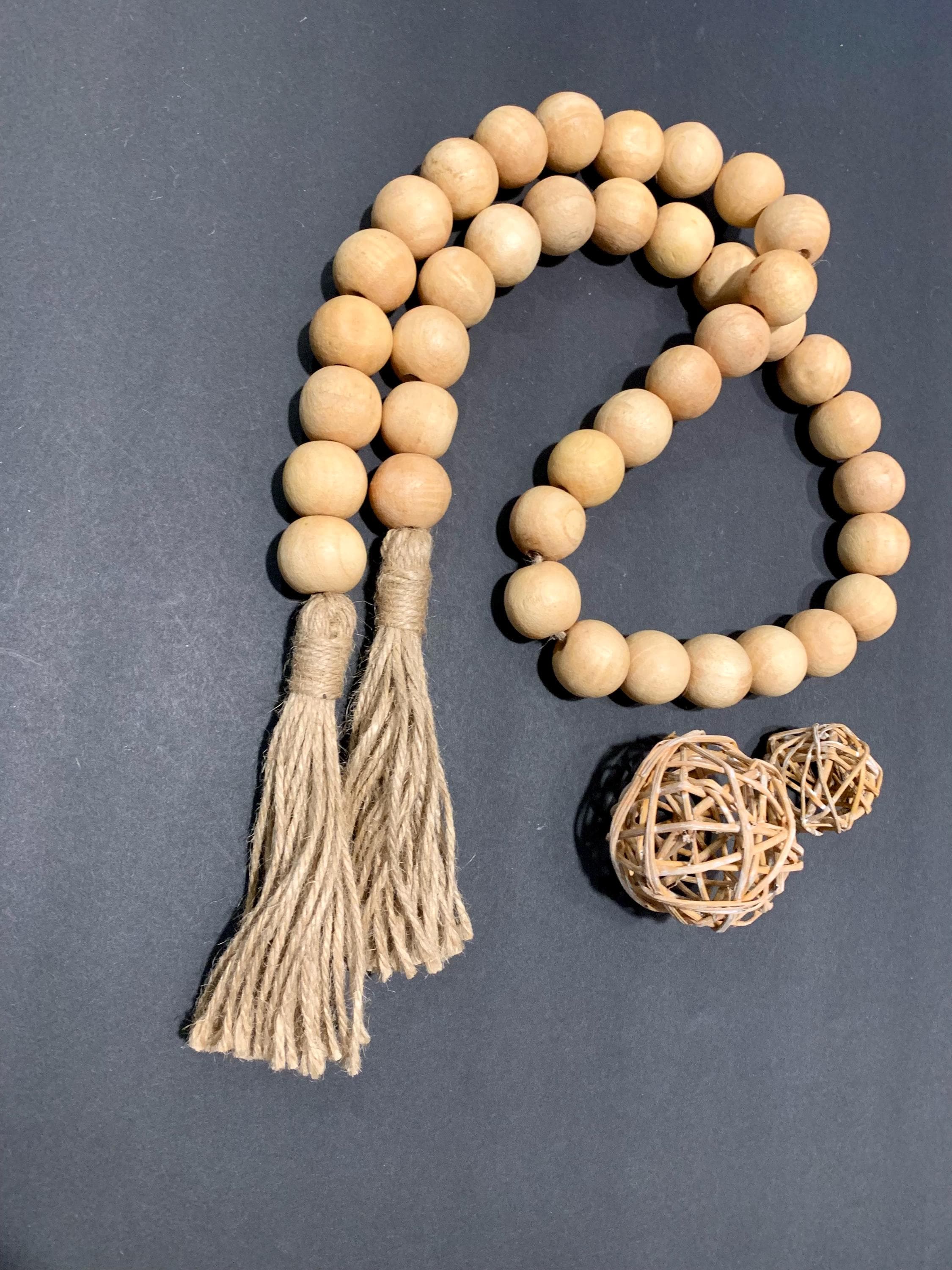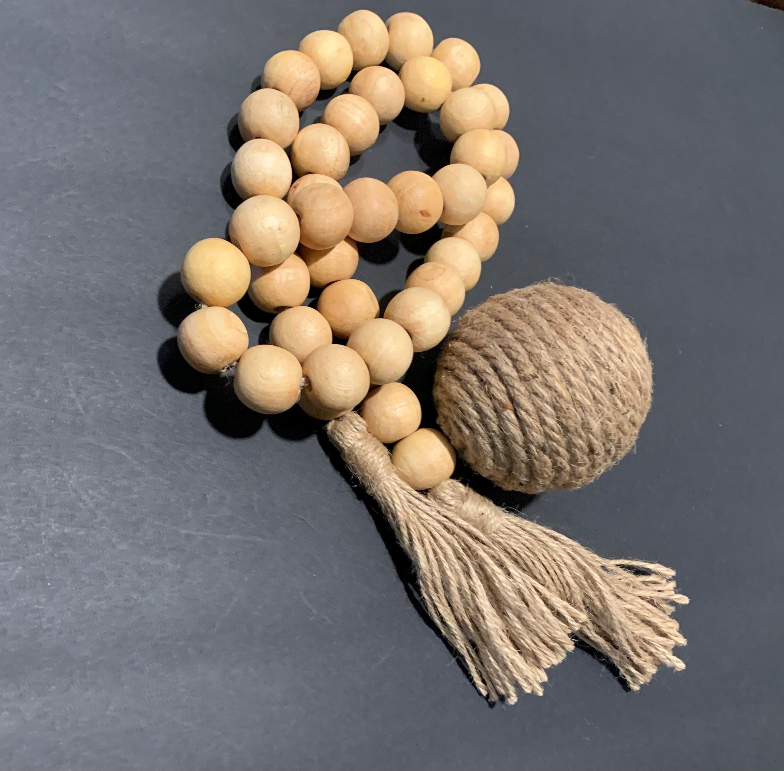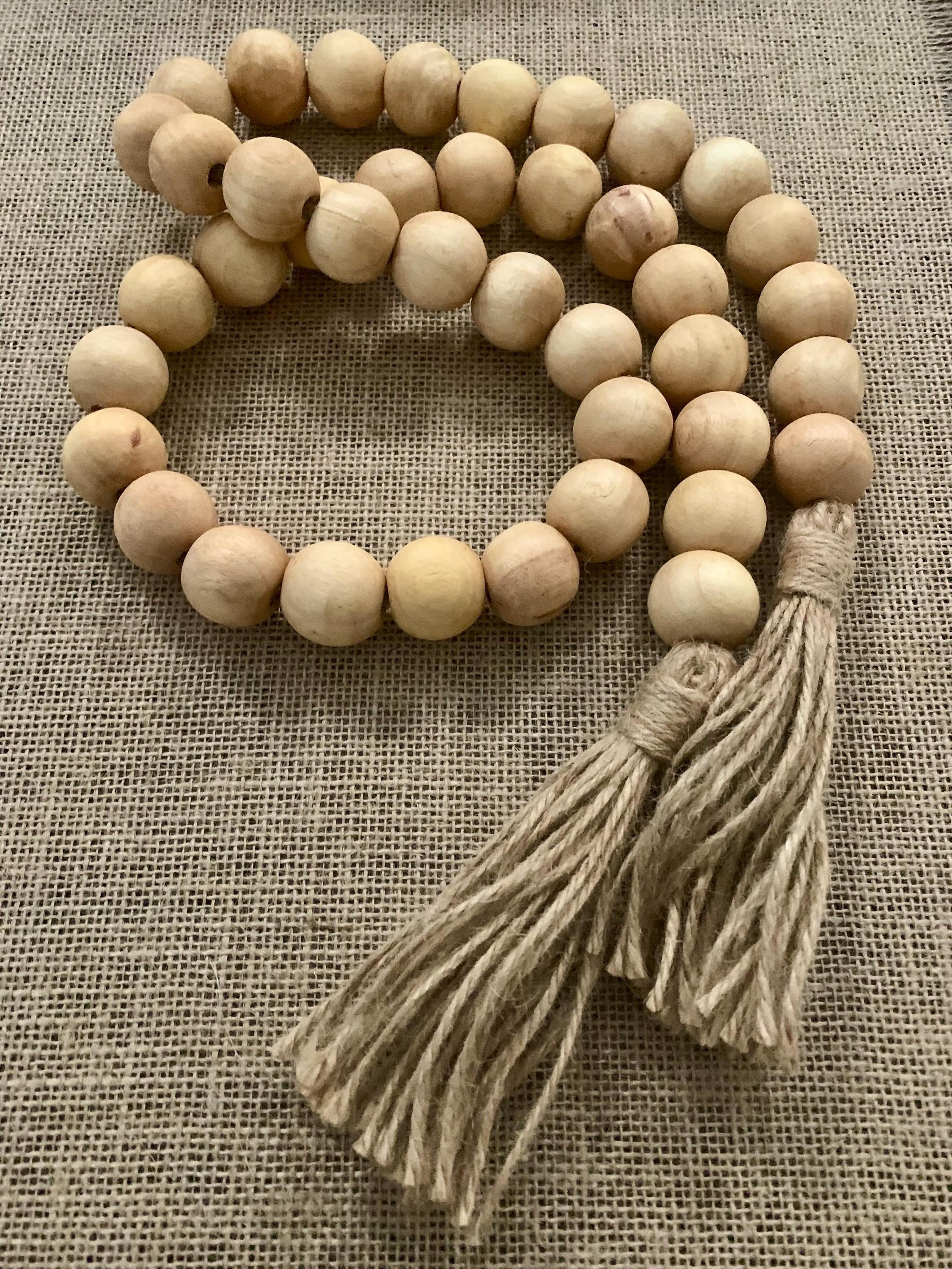 Enhance your home decor with our stunning Large Natural Wood Beaded Garland with Tassels. The beautifully crafted piece features natural wood beads that bring an organic touch to any space. Perfect for draping over shelves, mantels, or as an eye-catching centerpiece, this garland adds warmth and texture to your living room, nursery, or event decor. Each tassel adds a playful flair, making this versatile piece a must-have for your boho, farmhouse, or coastal style home. Transform your space today!