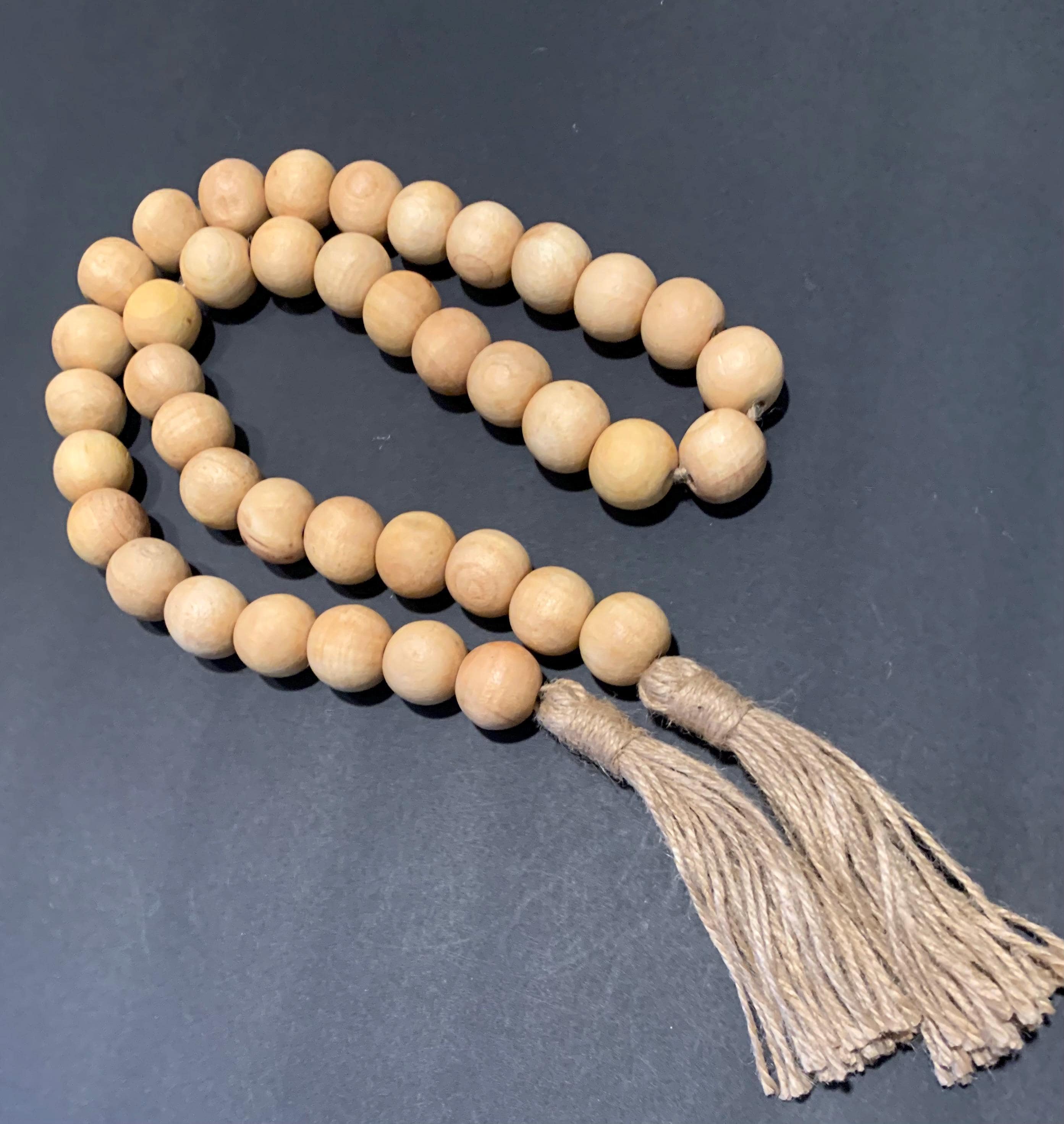 -The beads are hand strung and each jute tassel is hand made.