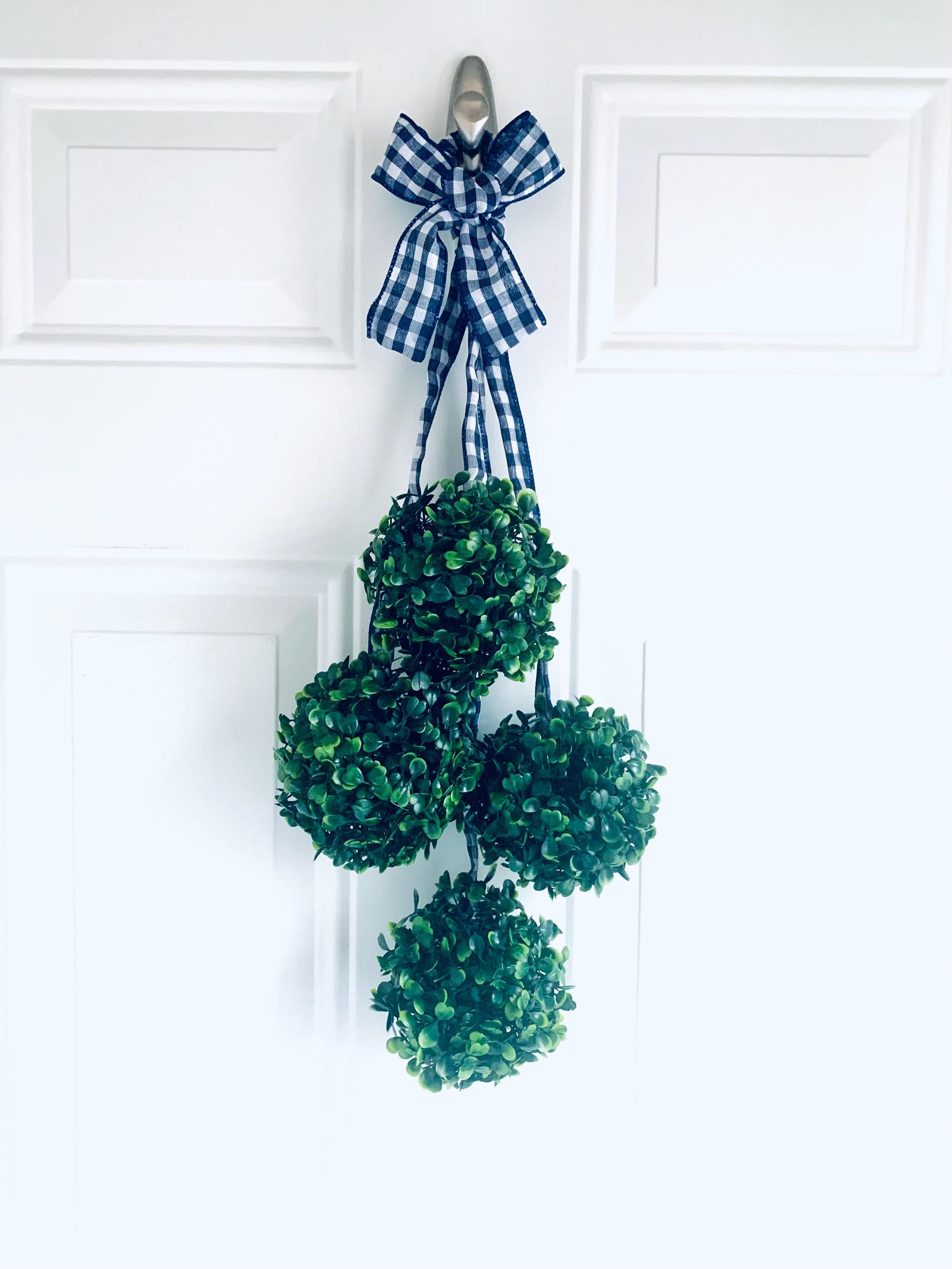 Welcome a touch of charm to your home with the Boxwood Greenery Door Hanger, adorned with a stylish Gingham Navy and White Ribbon. Perfect for celebrating every season, this versatile decor piece adds a fresh, welcoming vibe to any entryway. Handmade with love, the door hanger is crafted from faux lush boxwood greenery, providing a timeless look that never fades. Ideal for front doors or as a lovely gift, it’s sure to impress. Elevate your decor today with this stunning statement piece!