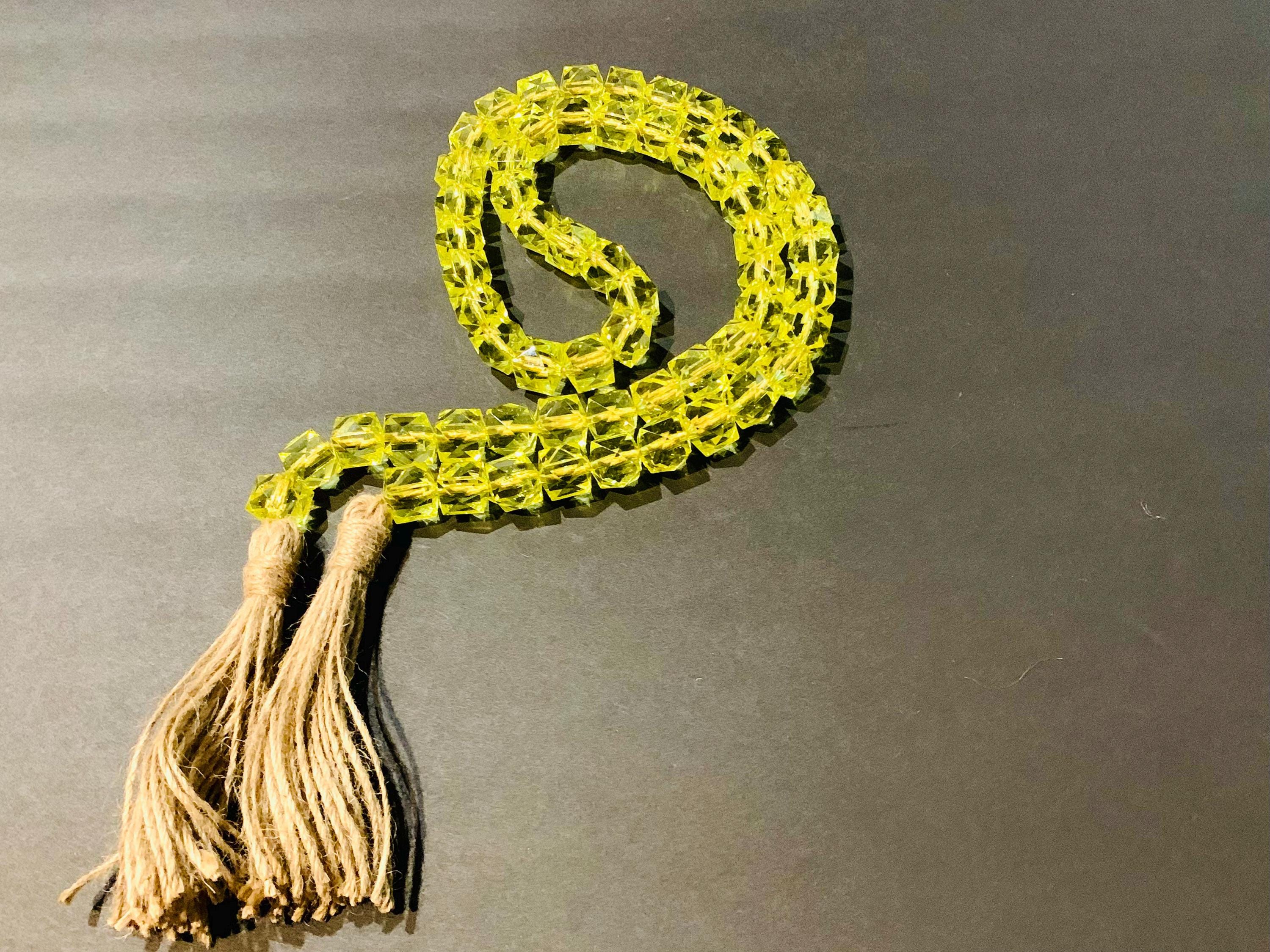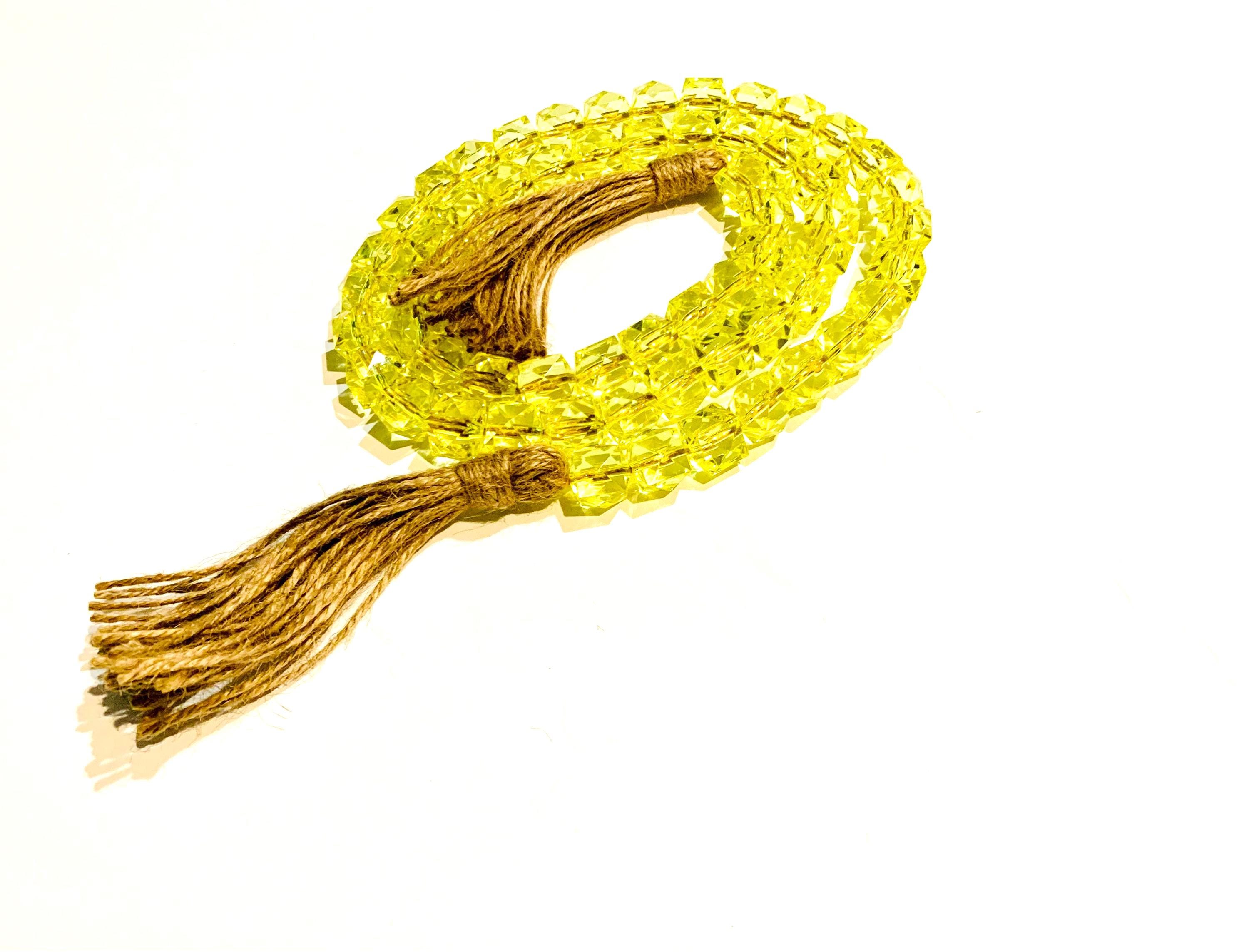 Add a pop of color to your space with our stunning Yellow Gem Cube Beaded Garland with tassels! Perfect for home decor, this vibrant garland beautifully complements any room. The unique yellow gem cubes paired with playful tassels create a whimsical touch, making it ideal for nurseries, living rooms, or party decorations. Each piece is carefully crafted to bring a cheerful ambiance wherever it’s displayed. Elevate your decor with this charming accent today!