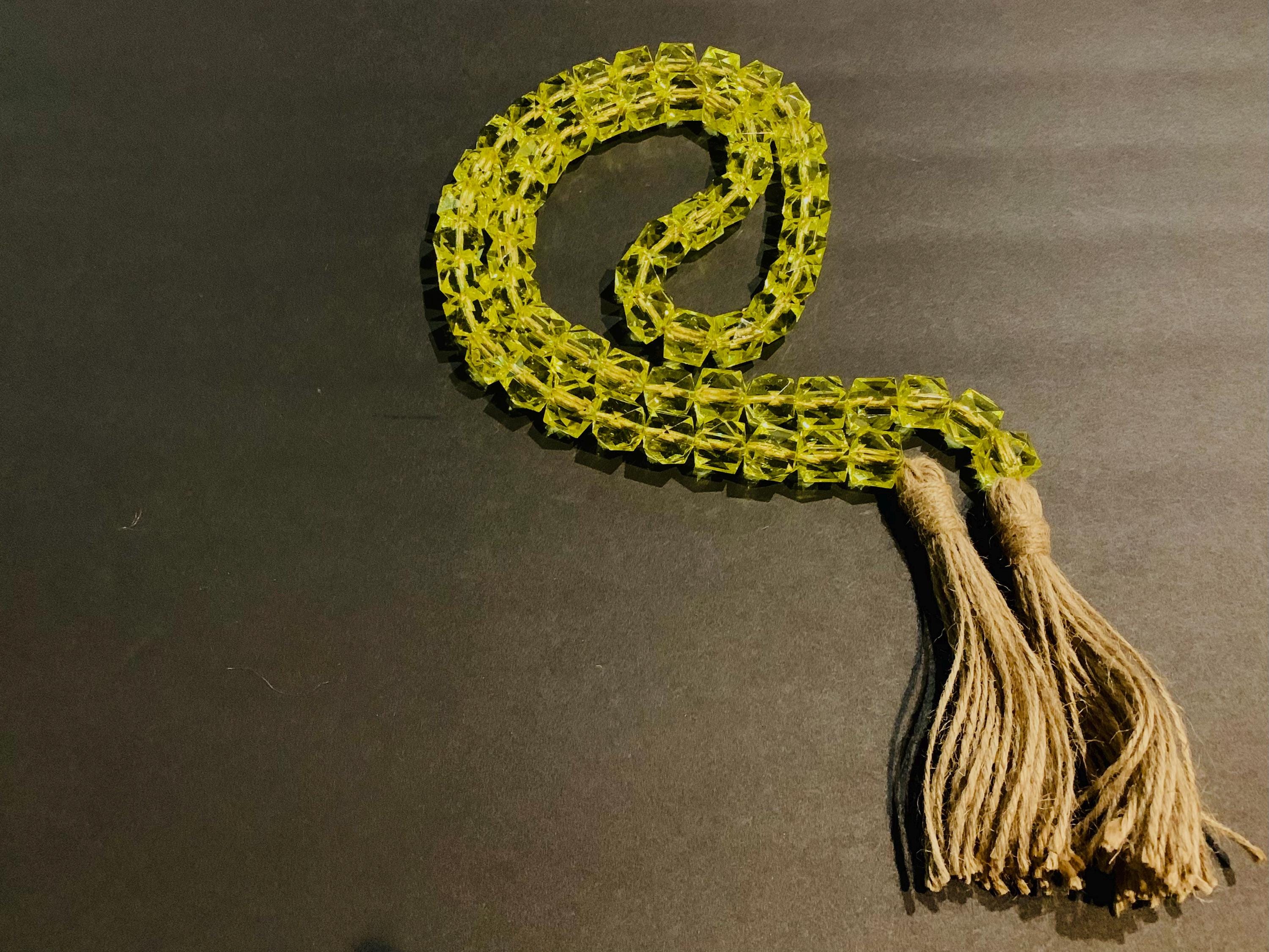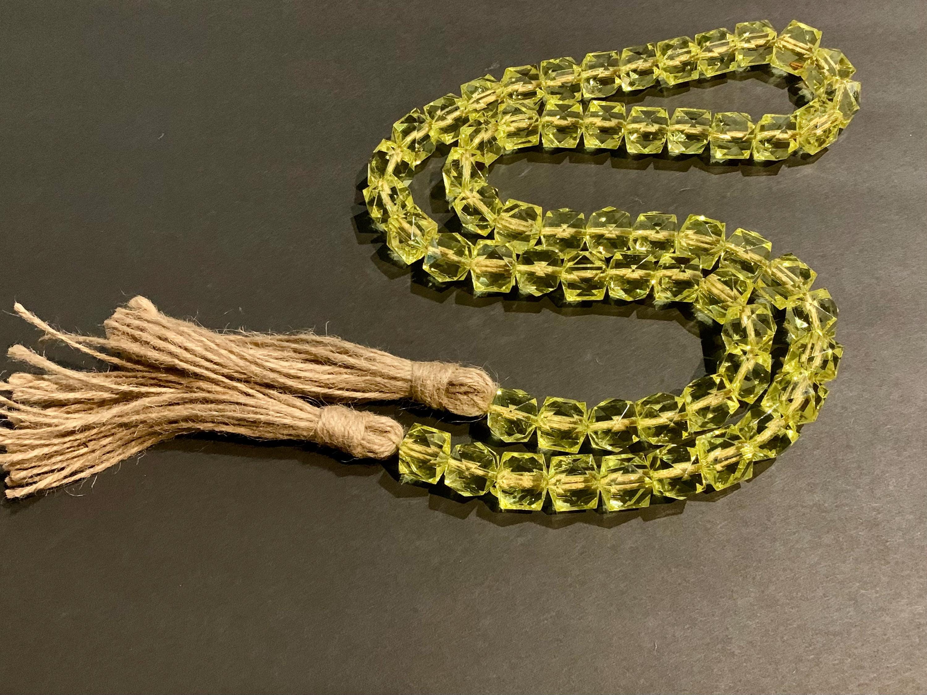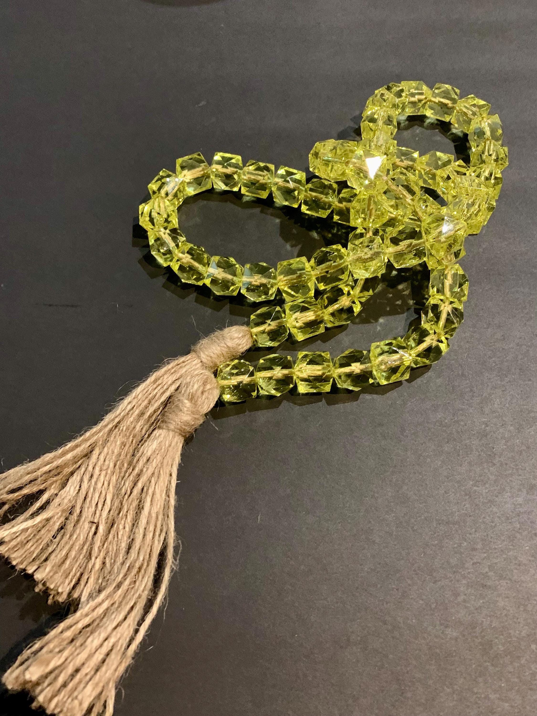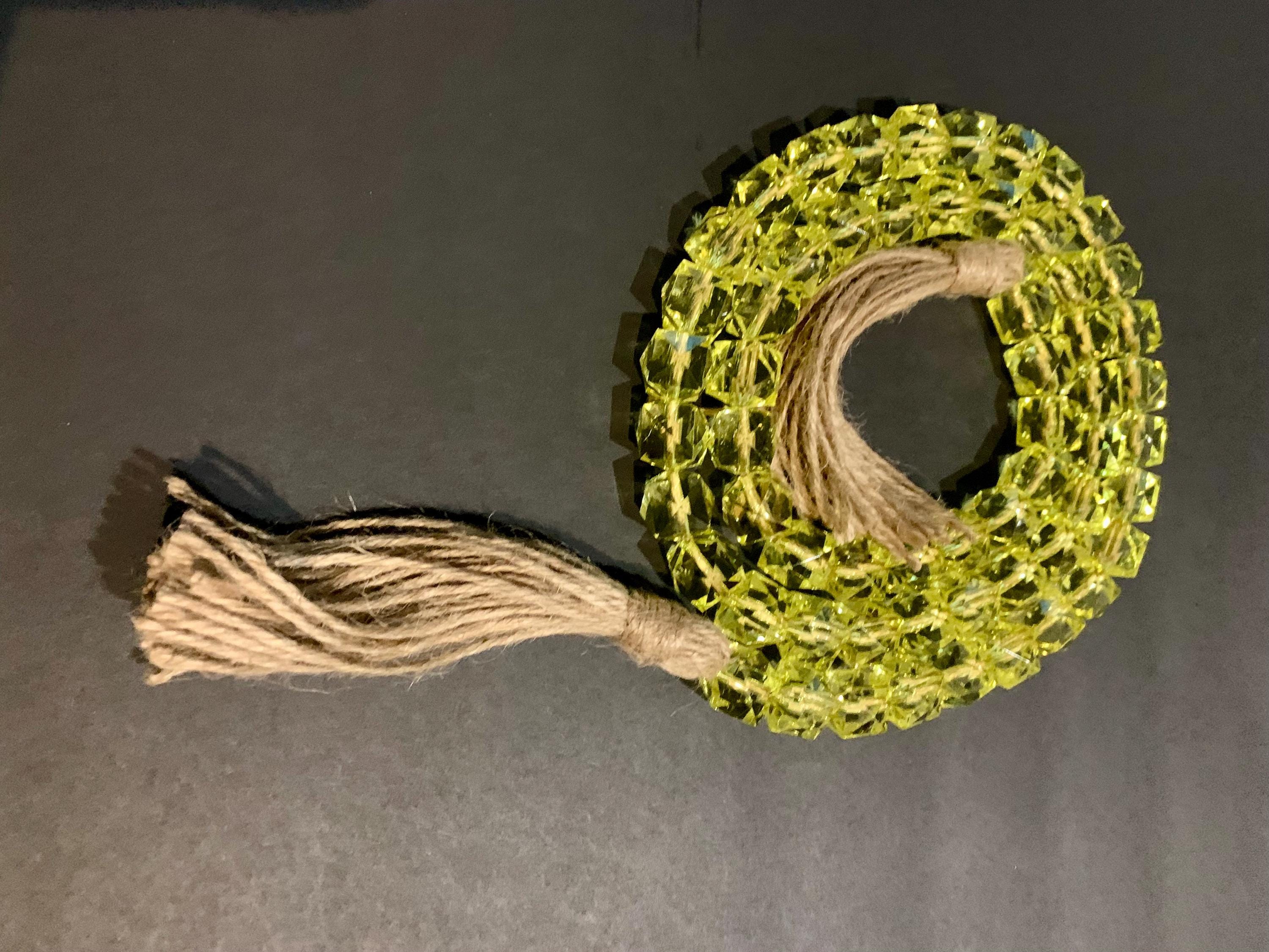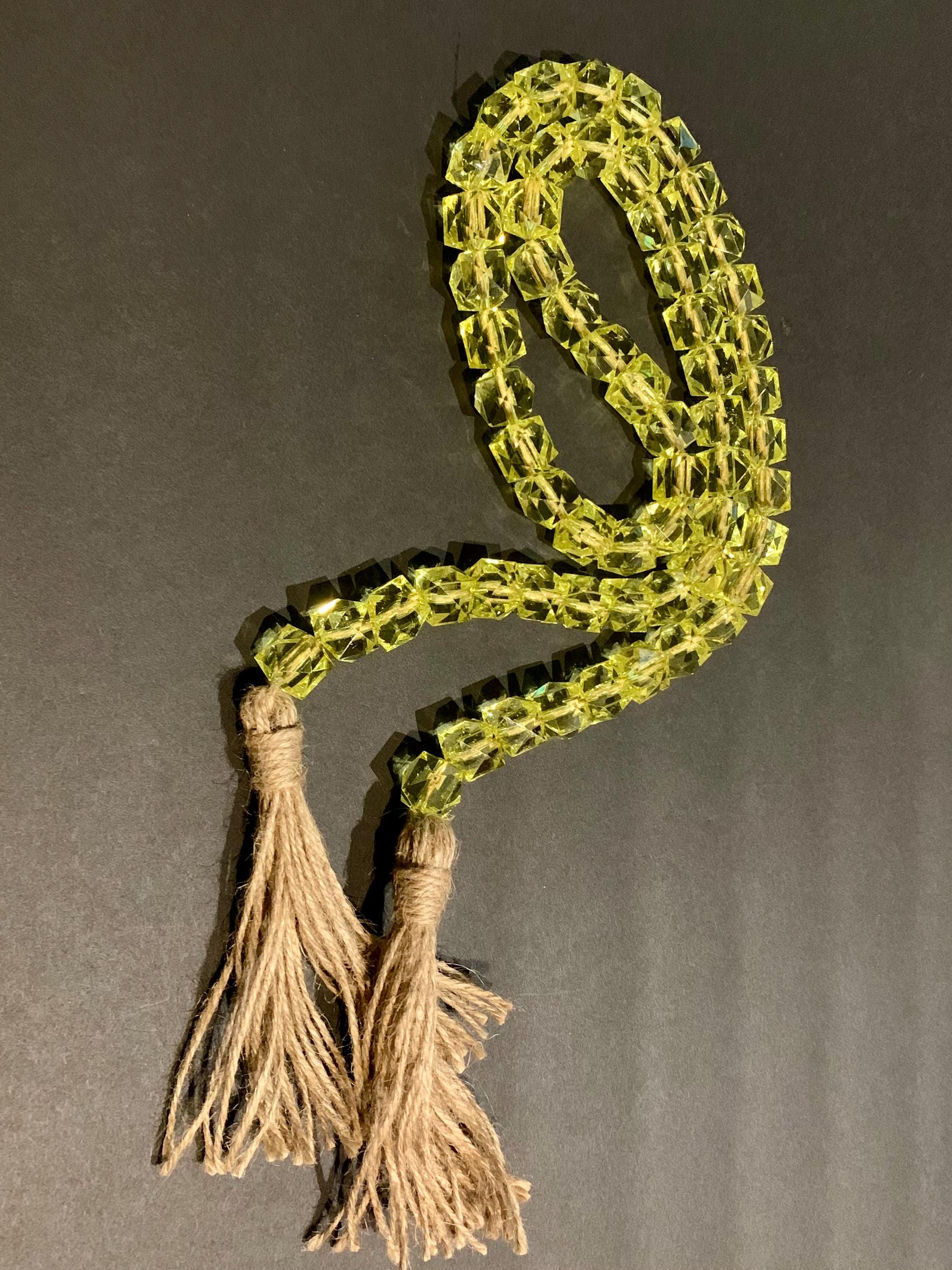 - The beads are hand strung and each jute tassel is hand made